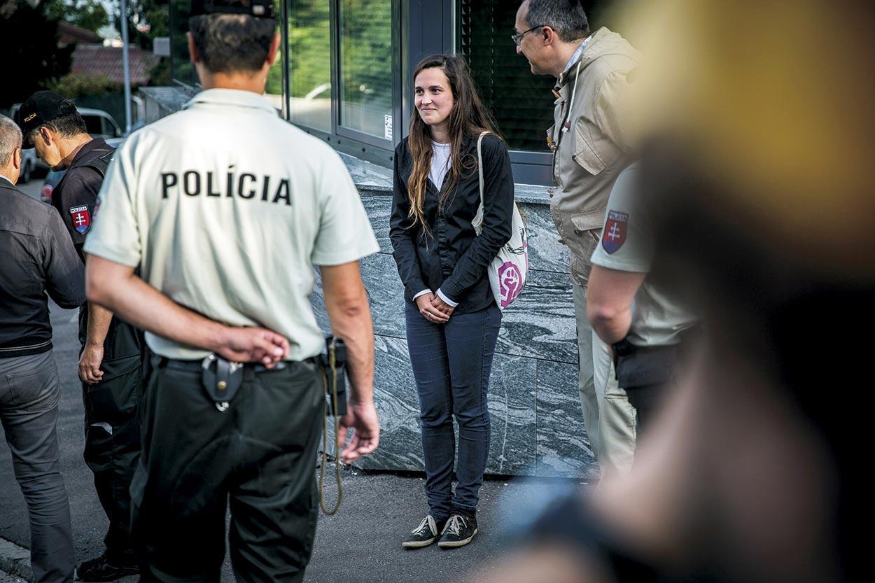 MARKO ERD/SITA22. augusta 2016, Bratislava: Alena Krempaská počas protestu Proti zlodejom v politike pred bytovým komplexom Bonaparte.