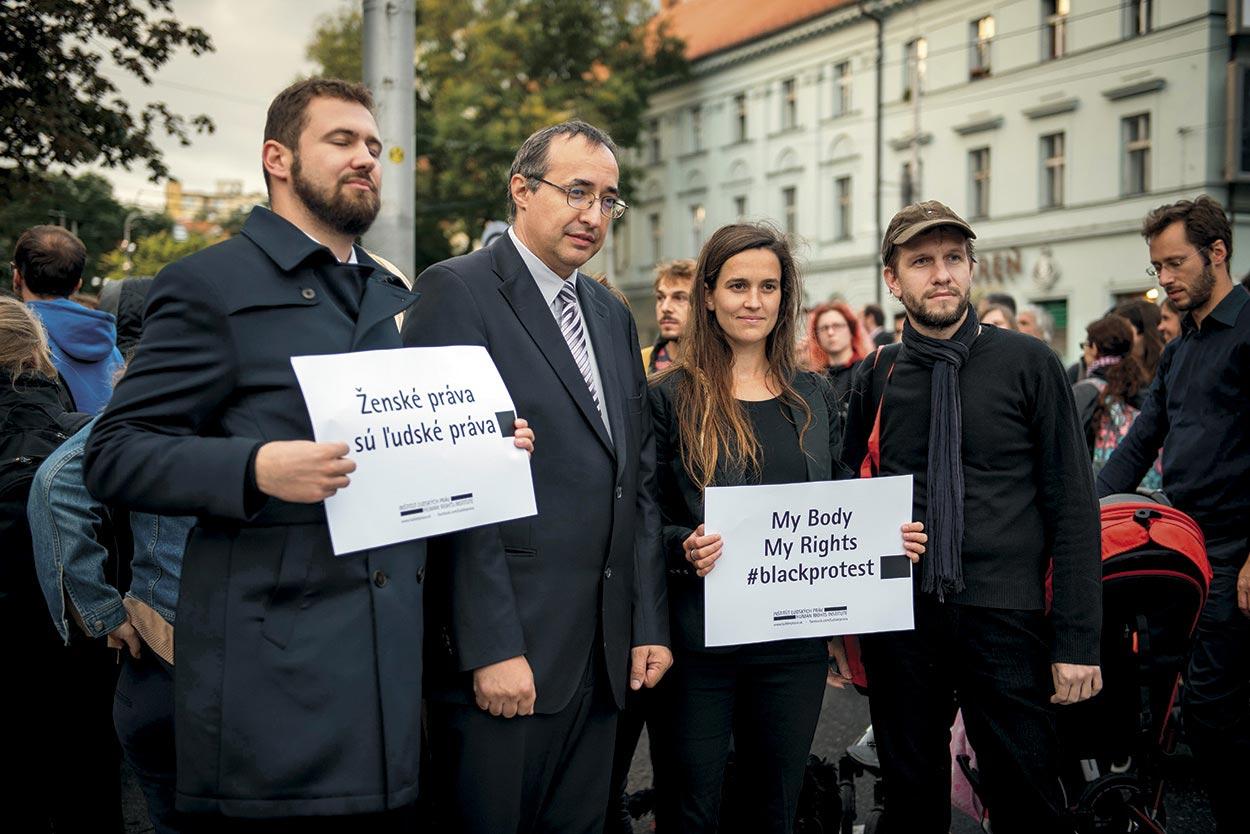 MONIKA ZAŤKOVÁ/SITA3. október 2016, Bratislava: Alena Krempaská a Peter Weisenbacher na proteste pred Poľským inštitútom proti zákazu interrupcií v Poľsku.