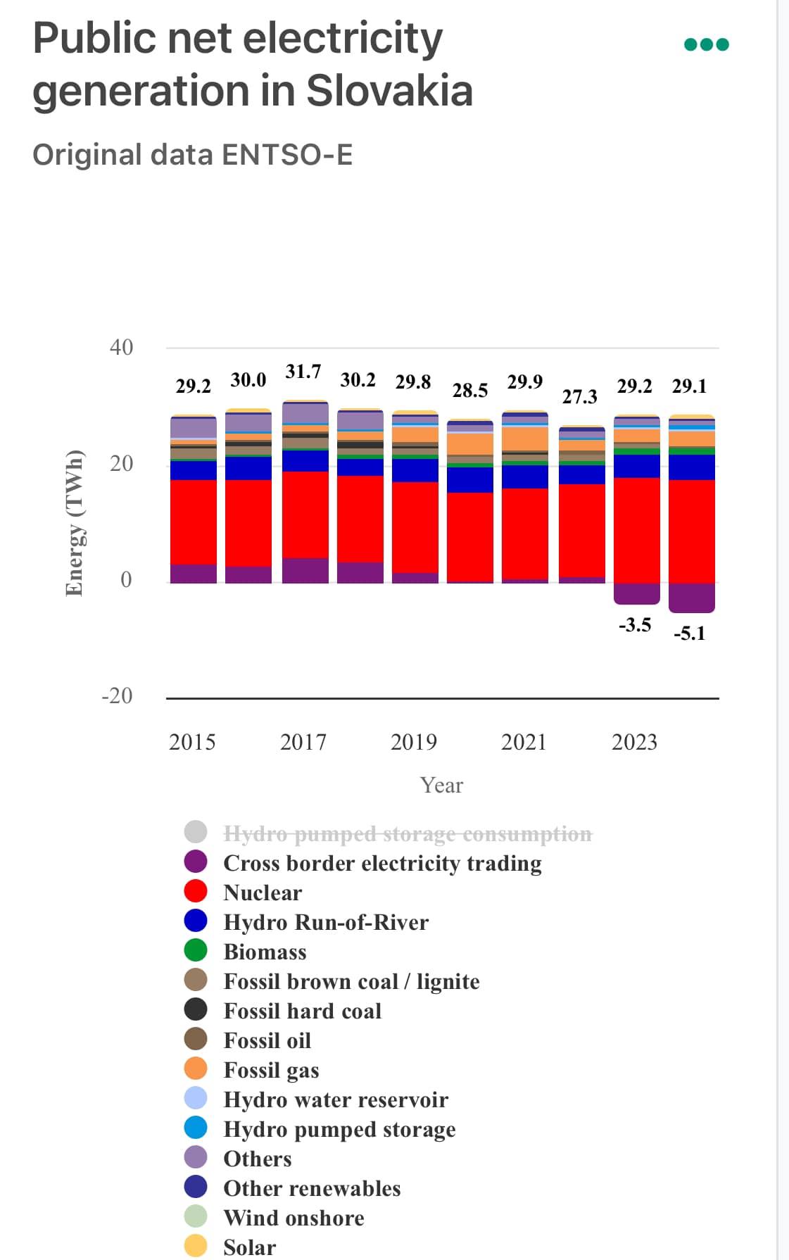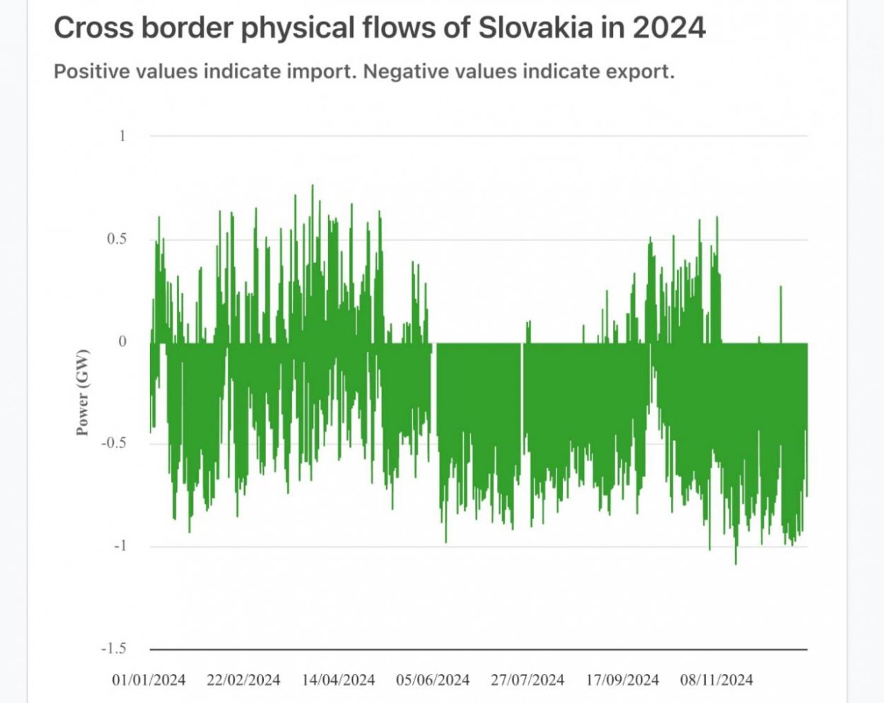 v roku 2024 je bilancia vývoz-dovoz elektrickej energie silne v prospech nášho vývozu. Priemerne ide o vývoz výkonu asi 320 MW v roku 2024, čo sú 2/3 výkonu 3. reaktora v Mochovciach (ak by išiel na plnú kapacitu 365 dní v roku, čo nejde).