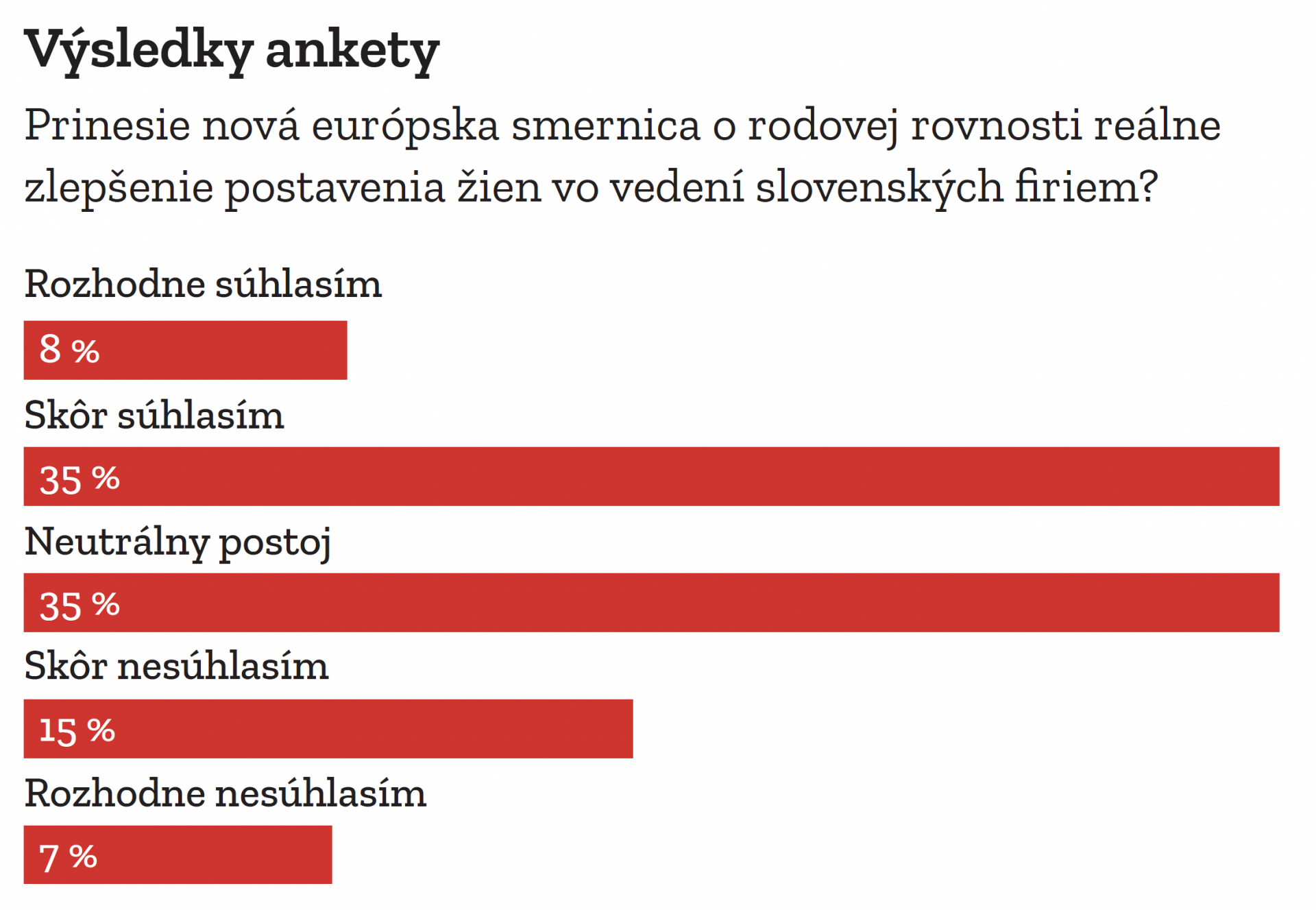 Ak hovoríme o zákone, ktorý schválila vláda SR a má platiť od júna 2026, tak si myslím, že zákon neprinesie na Slovensku veľmi významné, plošné zlepšenie postavenia žien vo firmách – aspoň nie v krátkom horizonte.