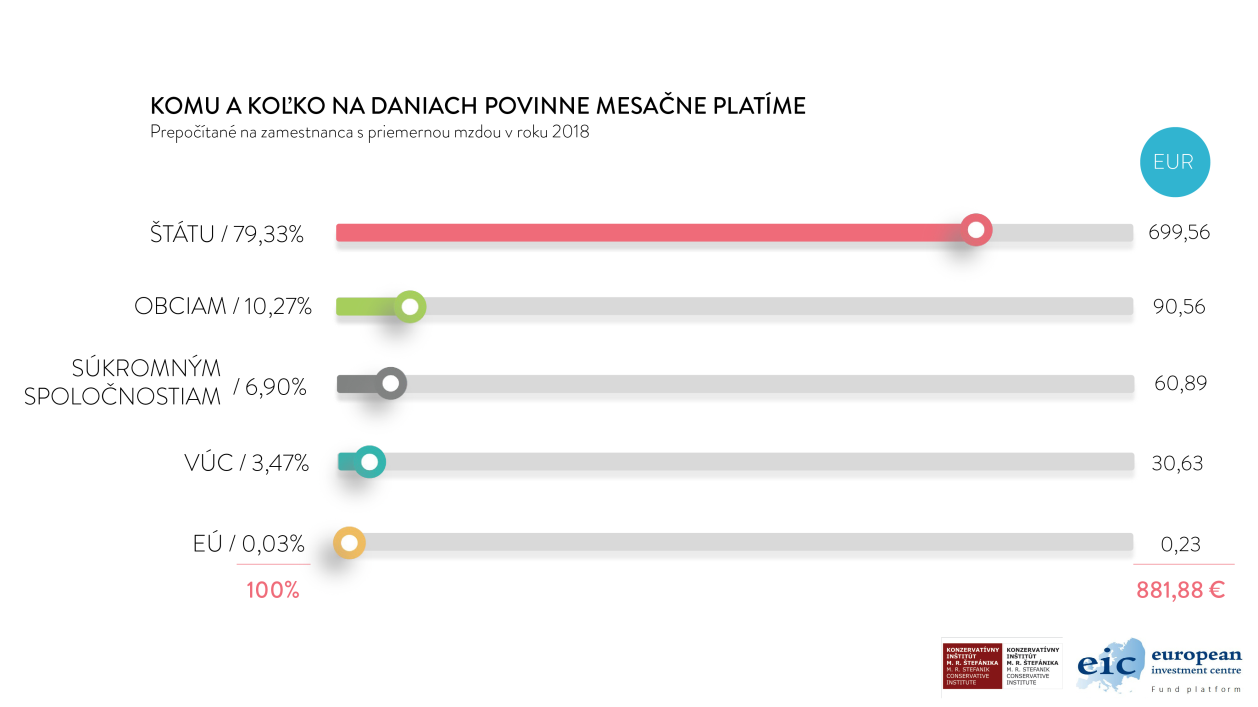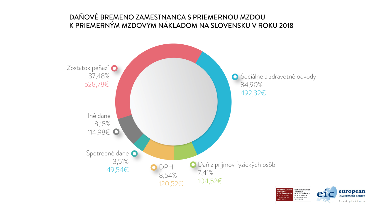 Podľa Konzervatívneho Inštitútu Milana Rastislava Štefánika zamestnanec s priemernou hrubou mzdou 1 013 eur pri nákladoch na prácu 1 411 eur, v minulom znášal bremeno všetkých daní vo výške 882 eur mesačne. Takmer o dvoch tretinách celkovej odmeny pre zamestnanca rozhoduje štát.