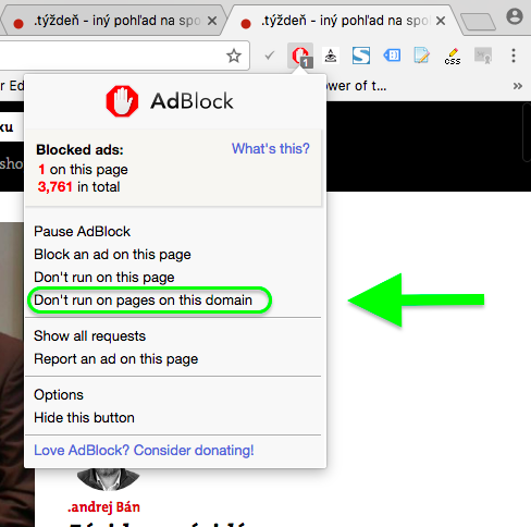 ako vypnúť Adblock na tyzden.sk (whitelist)