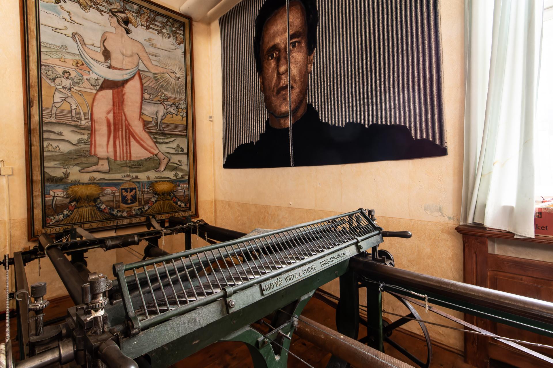 Hneď vo vstupnej chodbe manufaktúry je gobelín tatíčka Masaryka, ktorý bol Shlattauerovým priateľom a často do gobelínky chodil aj s dcérou Alicou. Na návšteve v roku 1924 dostal gobelín „Pravda vítězí“. Masaryk sa všeobecne s týmto krajom viaže veľmi silne: bol zvolený ako poslanec za Valašsko vo Viedenskej ríšskej rade, kde si „brúsil ostrohy“ veľkej politiky. No ale to už nakúkame do veľkej sály, kde to celé vzniká. Obdivujeme obrovské stavy s napnutými osnovnými niťami, medzi ktoré šikovné dámy zanášajú útkové nite (to sú tie farebné v protismere, ktoré nemusia byť spojité). Pred sebou majú celok aj detailný štvorčekový vzor, ako tkať a akými farbami.