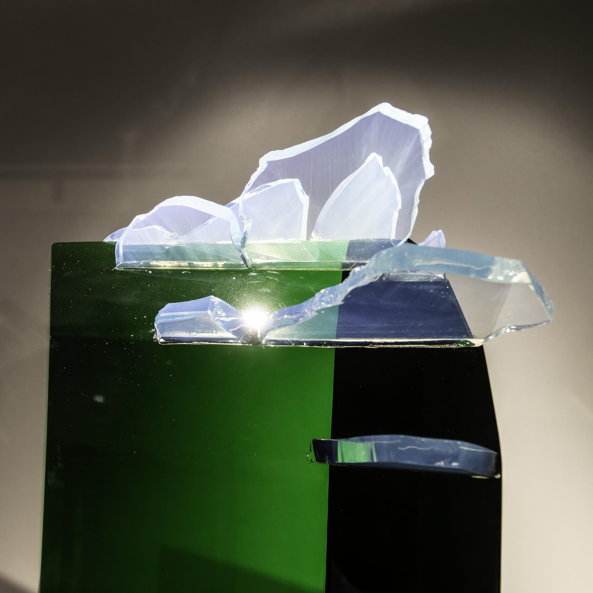 Ťažko opísať emócie, ktoré sa človeka zmocňujú pri prechádzke týmto skleným mestom (expozícia je architektonicky vystavaná ako mesto, ale to som sa dočítal až na stránke výstavy), no aj pri nepoučenom pohľade nás obklopí čistá nádhera. Pretože sklo – to je predovšetkým svetlo, ktoré cezeň preniká a ktoré ho doslova spoluvytvára. Aspoň v prípade umeleckého sklárstva a špeciálne voľnej tvorby. Slová sú zbytočné, treba vidieť. Kurátorom výstavy patrí veľká pochvala, že exponáty, samozrejme, „fungujú“ každý osve, ale dávajú zmysel aj v širšom celku, ba vytvárajú synergiu. Ale nielen to, mnohé diela sa menia aj keď ich obchádzate – v závislosti od uhla pohľadu a smeru osvetlenia. V hre sú aj tiene, odrazy, odlesky alebo lúče na pozadí. Je to podmanivý svet, v ktorom sa ocitnete.