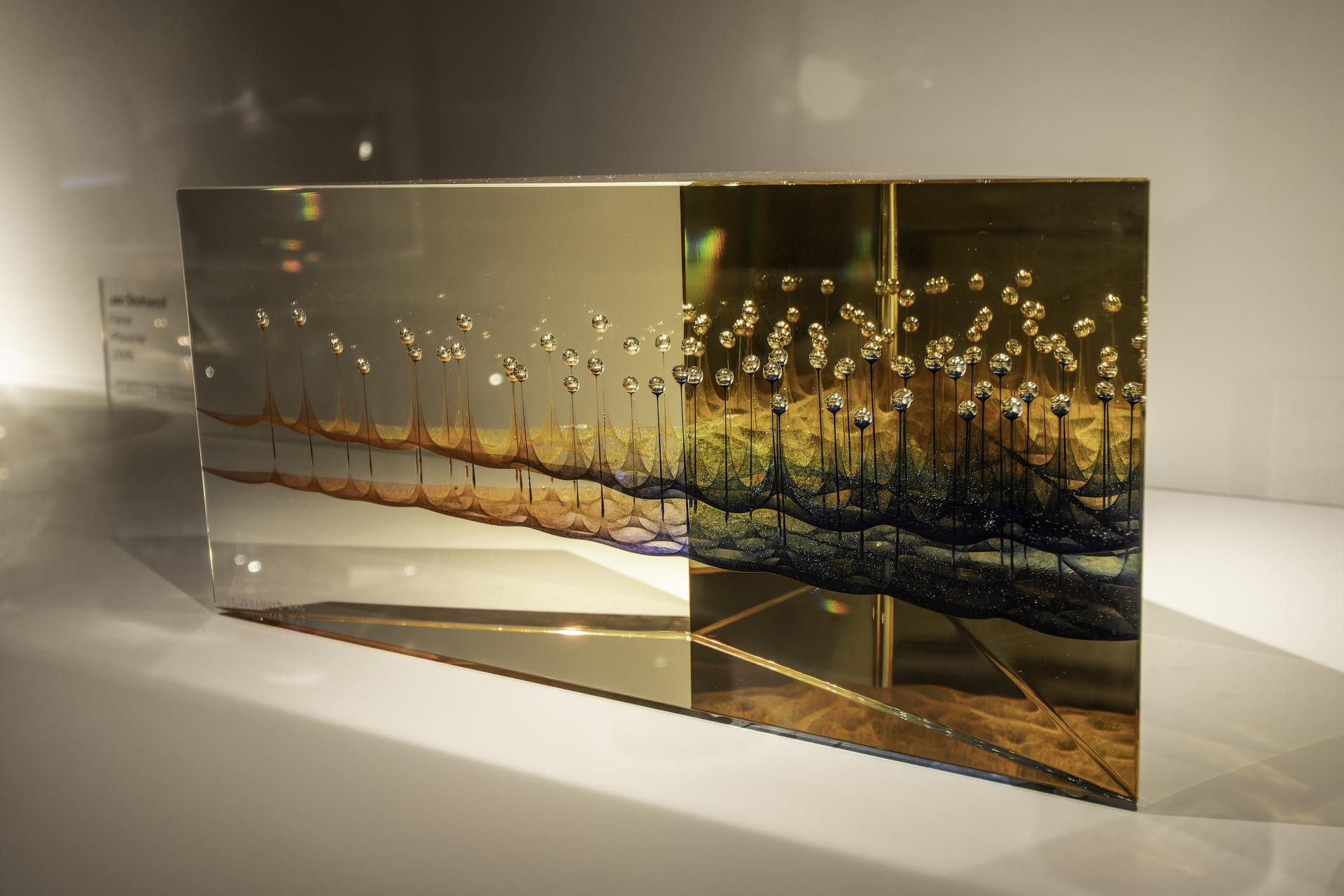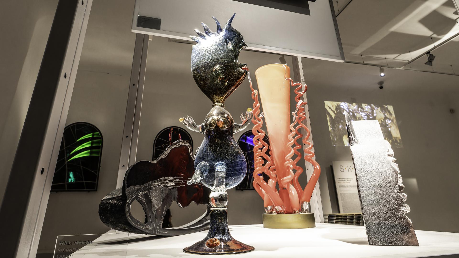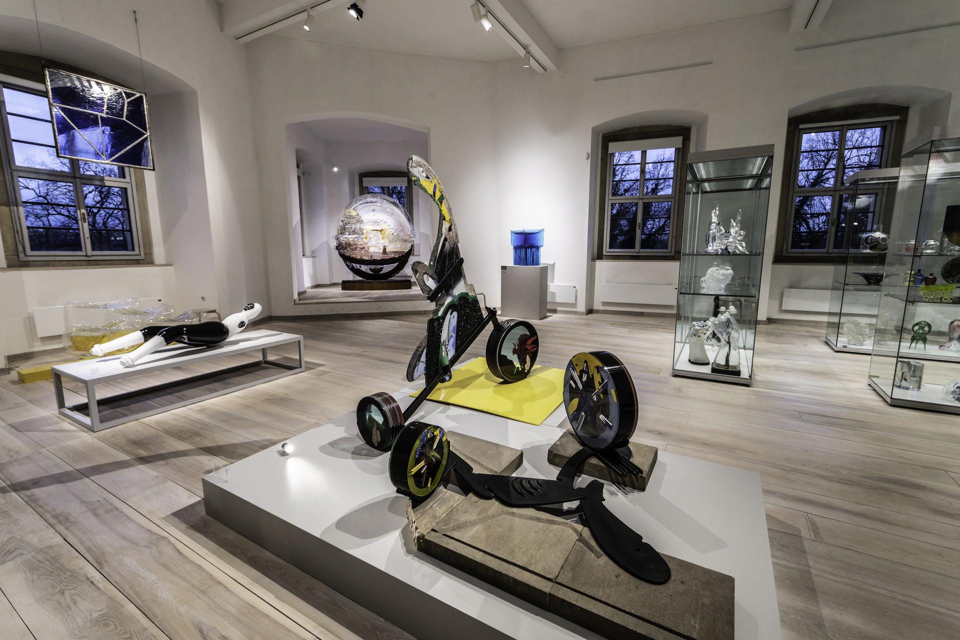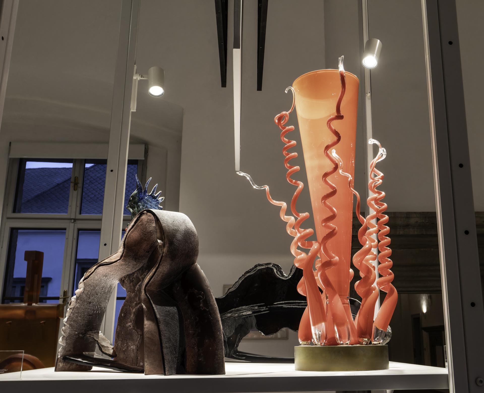 V dvoch veľkých sálach je vystavených viac ako 160 exponátov, ktoré sa v histórii odboru radia k špičkovým výtvorom aj v medzinárodnom kontexte. Nájdeme tu diela najvýznamnejších osobností českého ateliérového skla.