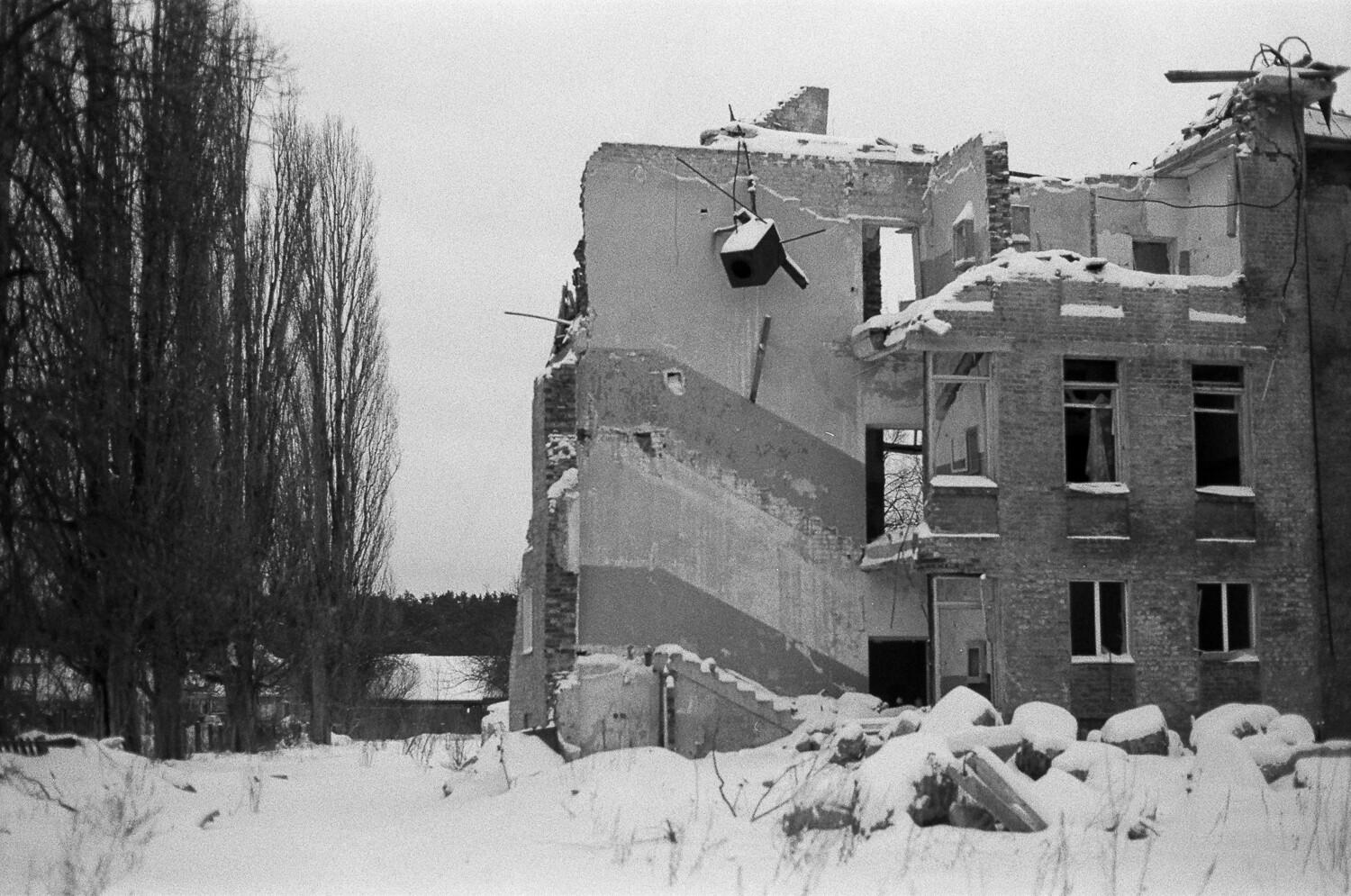„Δια“ znamená v gréčtine „cez“, „skrz“. “Koniec” je posledné slovo, ktorým sa končí každý diafilm. Ak spojíme tieto slová dohromady, dostaneme „cez koniec“. Štúdia o jave, ktorý sa už skončil. Kurátorkou projektu Dia Kinets je Eva Holts, pôvodom z Černihova na Ukrajine. Dňa 3. marca 2022 Rusi zbombardovali školu, kde študovala. Až o rok neskôr našla odvahu nahliadnuť do školy a prejsť sa po jej schátraných chodbách. Medzi odpadkami našla množstvo filmov. A keďže si uvedomila, že obrovské množstvo materiálu nedokáže naštudovať sama, pozvala k spolupráci ďalších ukrajinských umelcov. Boli vytvorené pre propagandu režimu, ale prežili Sovietsky zväz aj samotnú školu. Bol to ich najdlhšie trvajúci domov. Teraz sa filmy stali súčasťou umeleckých diel. Ich účel sa dramaticky zmenil. Ako presne sa zmenil, môžete vidieť na dielach umelcov a umelkýň z Ukrajiny.
