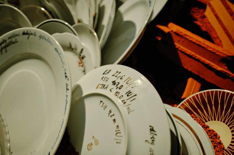 „Miestošpecifickú inštaláciu Sediment vytvorila Andrea Čepiššáková z niekoľkých tisícok porcelánových tanierov. Kvetinové okraje, starodávny ornament po babke, zvyšky svadobných servisov, darované a nikdy nepoužité tanierové sady – Moser a Thun bok po boku s genericky potlačeným vzorom z diskontu…V záhrade Slovenskej katolíckej charity, jednej z dôležitých organizácií, ktorá pomáha ľuďom v núdzi, sú stovky prázdnych tanierov nie len esteticky košatým diváckym zážitkom ale aj bolestivou pripomienkou hladujúcich, vysídlených a opustených – tých, ktorí prišli o svoje domovy, istoty i dôstojnosť. Prázdny tanier neznamená len absenciu fyzickej potravy, ale aj našu kolektívnu otupenosť a odpojenosť od utrpenia iných. V dobe algoritmickej selekcie správ je až znepokojivo jednoduché prehliadať realitu tých, ktorých každodennosťou je strach, hlad, chlad a núdza.”