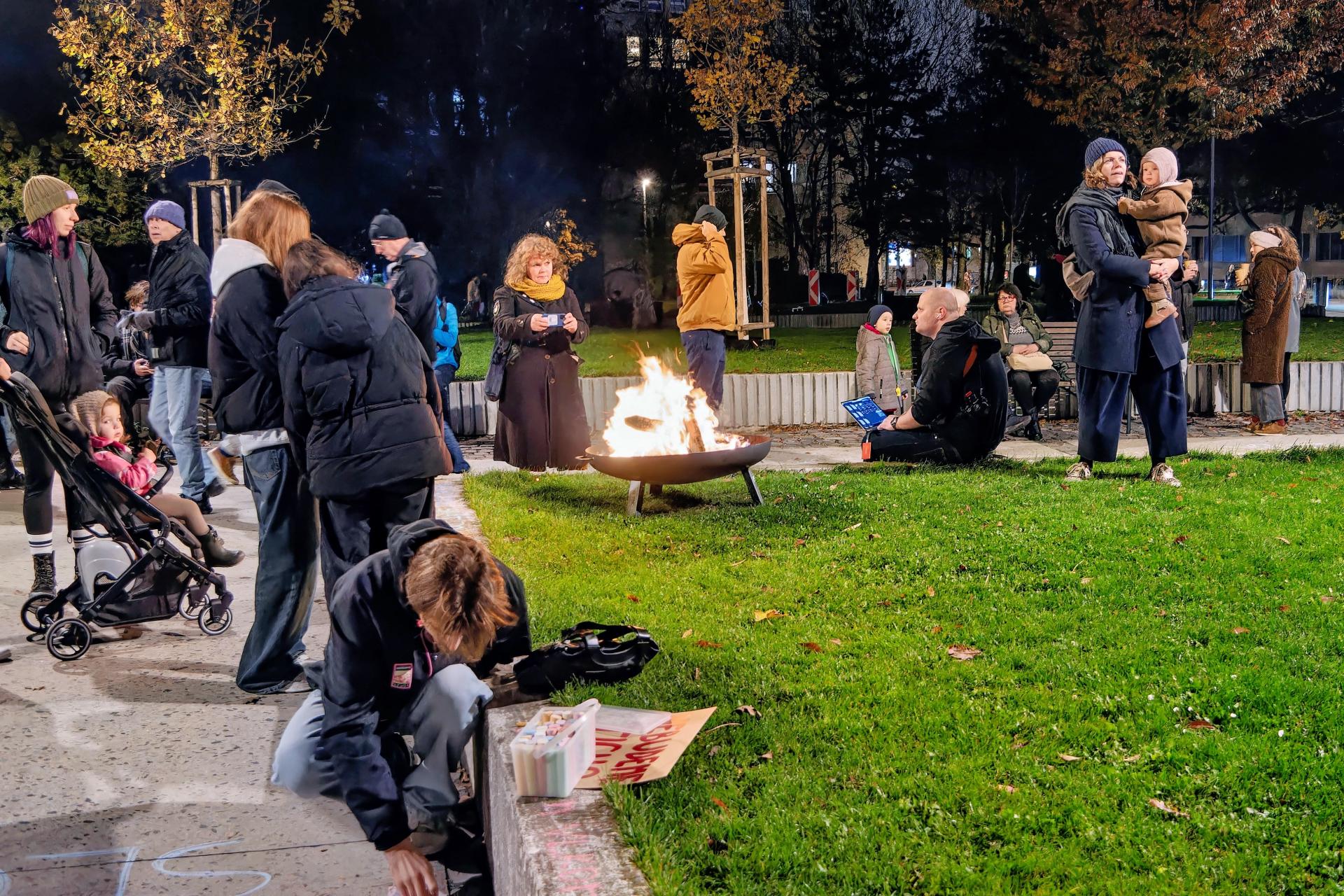Trochu sme sa obávali, že čo takáto roztrieštenosť urobí s návštevnosťou. Tieto jednotlivé podujatia nemali na sociálnych médiách takú synergiu ako keď šlo o jedno zhromaždenie, ale námestie sa napokon naplnilo veľmi spoľahlivo, chodníky sa pokrývali nápismi (kriedy boli k dispozícii do vyčerpania zásob) a na kraji námestia dokonca horel liberálny oheň.