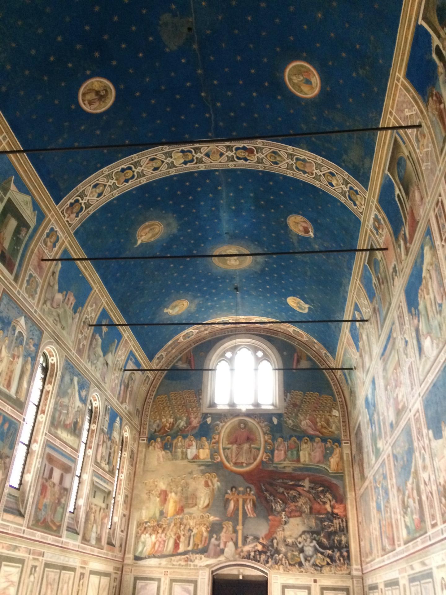 Nemá zmysel predstavovať tu rad radom všetky slávne Giottove diela, tie si vie ktokoľvek nájsť na internete. Dotknem sa teda len zlomku jeho tvorby. Keď sme pred dvoma rokmi s rodinou čakali v Padove na vstup do Kaplnky rodiny Scrovegniovcov, netušil som ešte, čo ma tam čaká. Najprv sme museli prejsť asi na pätnásť minút do klimatizovanej miestnosti, aby sa za ten čas stabilizovala vnútorná mikroklíma priestoru. Dvere na vstup a výstup sa následne otvorili: zatiaľ čo jedna skupina návštevníkov vychádzala von, druhá mohla vstúpiť dovnútra. Každý vstup pritom netrval dlhšie než dvadsať minút.
