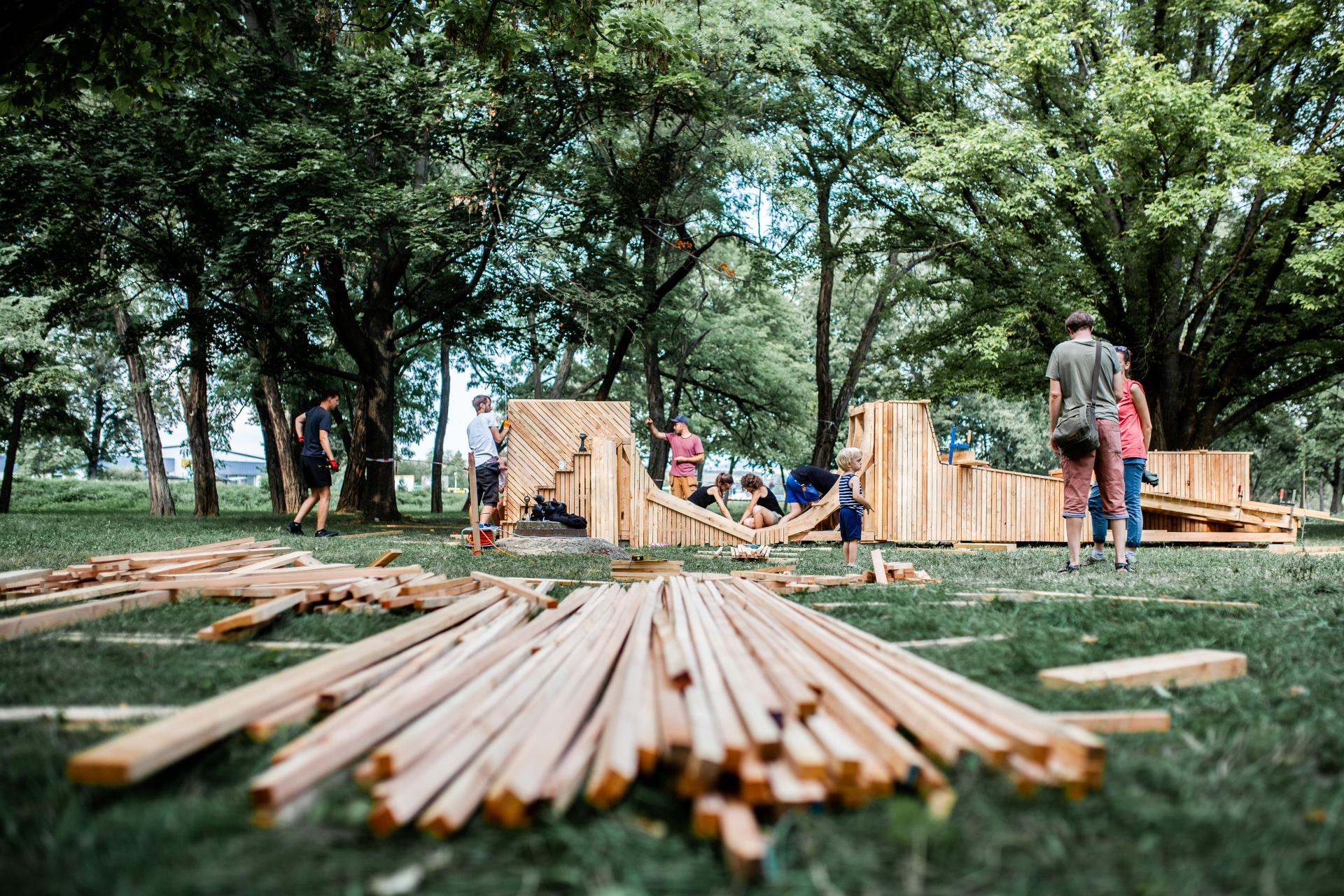 Samotný park bol už od vzniku „Baťovian“ dôležitou súčasťou koncepcie ideálneho priemyselného mesta. Tvoril časť takzvaného pásu regulačnej zelene, ktorý delil výrobný areál od zvyšku mesta, v ktorom sa žilo a mal regulovať smog a hluk z továrne. Partia účastníkov medzinárodného projektu [1:1] WORKSHOP pod vedením dánskeho stolára a architekta Tobiasa Foged Permina a Danice Pištekovej z ateliéru Woven sa rozhodla vdýchnuť parku „nový život“ zaujímavým dreveným objektom.