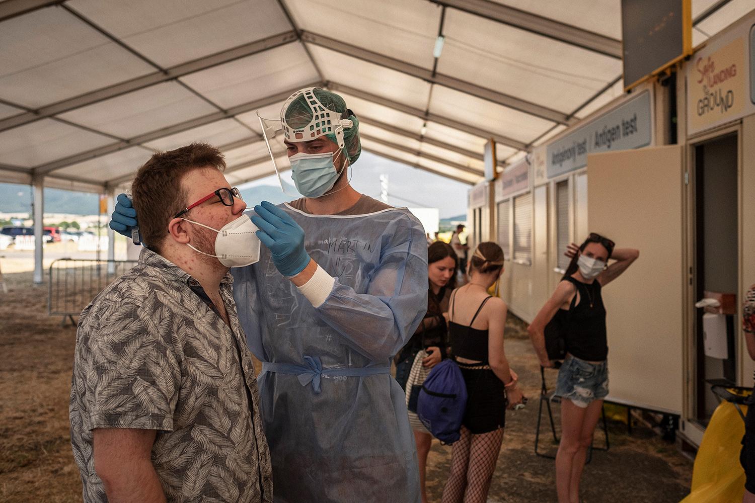 Pred festivalom sa výdatne testuje, všetci návštevníci musia mať negatívny test alebo Greenpass, aby sa mohli dostať dnu. Mišo Kaščák nedávno povedal, že Pohoda bude najbezpečnejším miestom na svete, kde zrážka s covidom bude takmer nemožná. Zatiaľ to platí. Testeri v unimobunkách na kraji areálu do piatka nezaznamenali jediného pozitívneho návštevníka. Za nepríjemnú paličku v nose to stojí, aj keď mladá hudobníčka, ktorá po zákroku slzila a gúľala očami, by počas pätnásťminútového čakania na výsledok tvrdila opak. Na vlastnej koži sme tak mohli pocíť, ako v najbližšej budúcnosti budeme chodiť na koncerty.