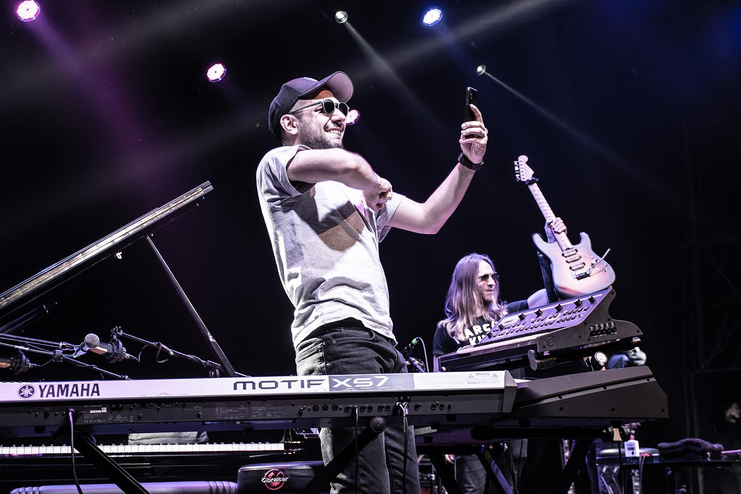 Marian Jaslovský9. máj 2023 STARS auditorium, Bratislava: Aj mladí Clarkovi spoluhráči si koncert užili. Vľavo fenomenálny Beka Gochiashvili.