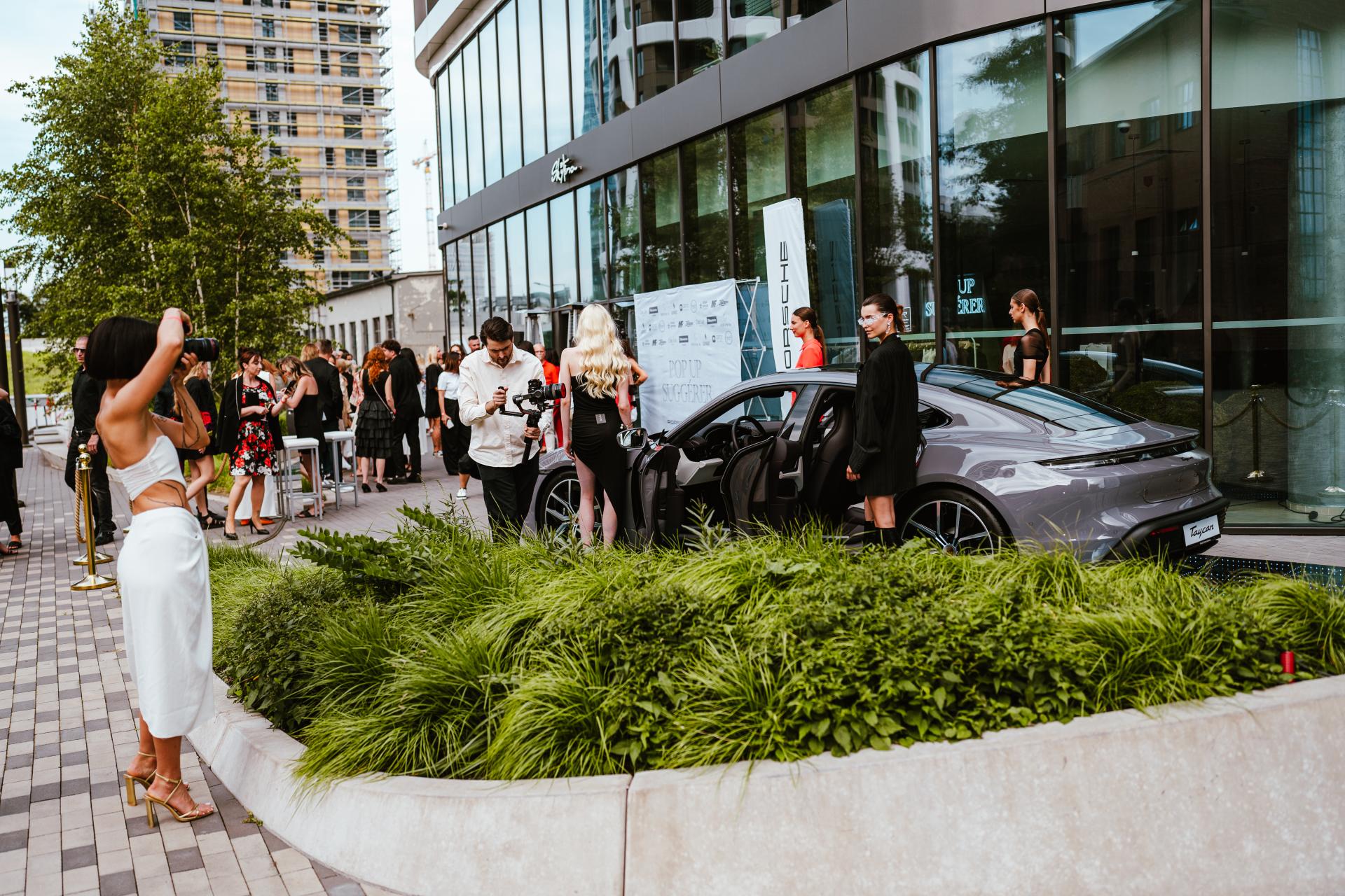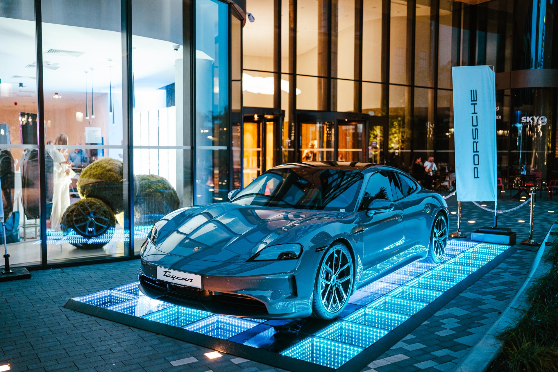 A bol to práve nový elektrický Taycan v nádhernej fialovej farbe provence, ktorý vítal každého návštevníka tohto výnimočného podujatia odohrávajúceho sa aj vo výnimočnom prostredí. Reštaurácia Skytina, kde sa POP UP SUGGÉRER konal, totiž susedí s vežami Sky Parku a Jurkovičovej teplárne v Bratislave.