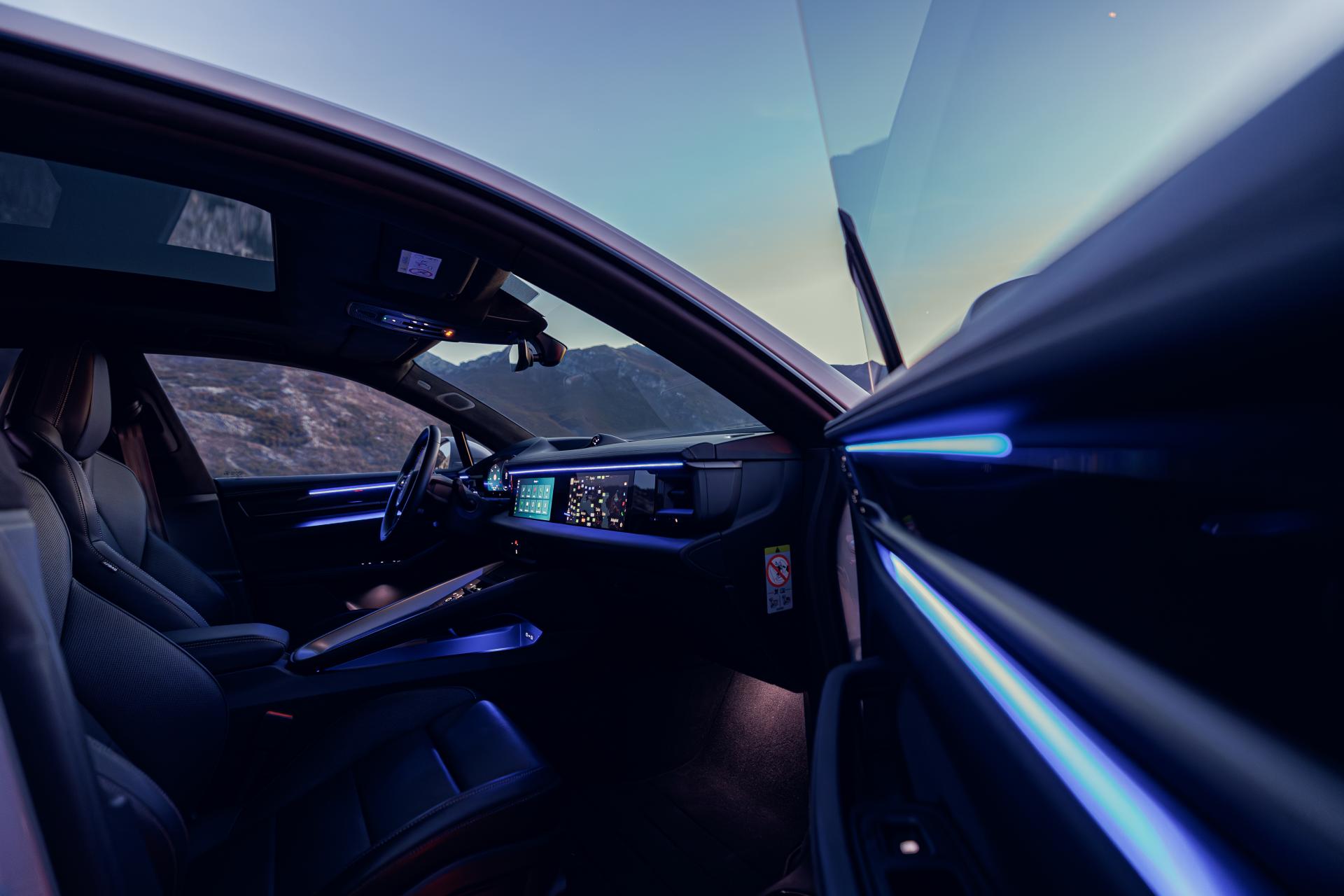 Chladným nás nenechal ani interiér, ktorý je majstrovským dielom moderného luxusu. Pred vodičom sa nachádza zakrivený 12,6-palcový displej, doplnený o head-up displej s rozšírenou realitou. Centrálny 10,9-palcový dotykový displej a rovnako veľká obrazovka pre spolujazdca vytvárajú dokonalú digitálnu harmóniu, pričom zachovávajú typické prvky značky Porsche.