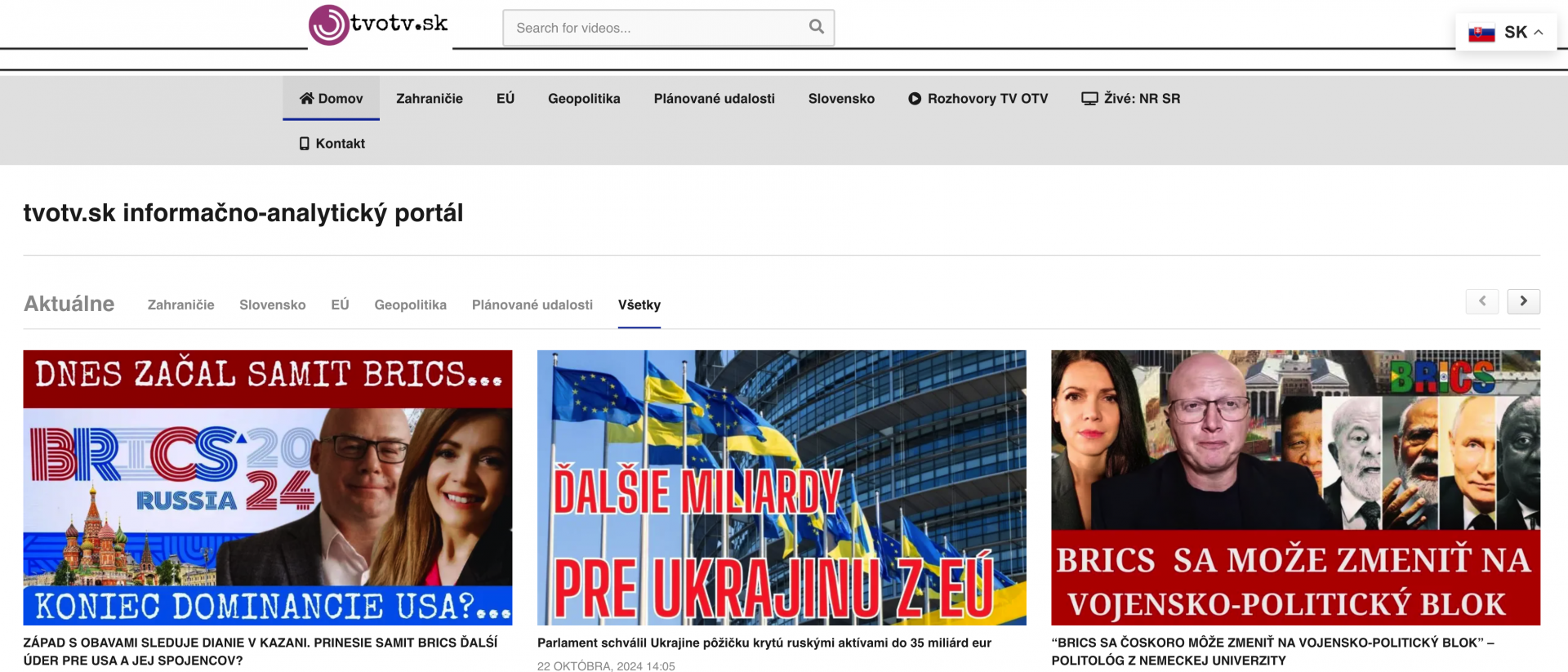 „Spravodajské médium“ TVOTV.sk začalo svoju činnosť v roku 2021, doména bola zaregistrovaná koncom roka 2020, na Telegrame sa objavili krátko po začiatku vojny na Ukrajine. Jeho hlavným produktom sú poloprofesionálne videá na úrovni internetovej televízie – nechýba vlastná grafická identita, vysielacie štúdio, dabing do slovenčiny, ale ani rozhovory s politicky exponovanými osobami a oficiálnymi zástupcami Ruskej federácie. Rozsah pôsobnosti TVOTV.sk zvýrazňuje fakt, že jeho pracovníci získali akreditácie pre vstup do slovenského parlamentu a europarlamentu.