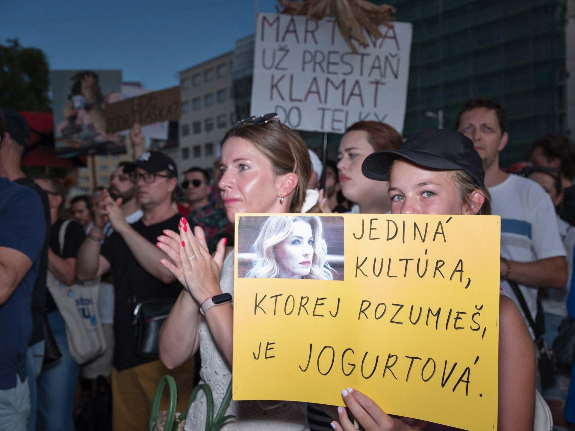 Oboch organizátoriek sa pýtam na budúcnosť. A tak trochu aj na nádej. Myslia si, že protesty niečo zmenia, alebo aspoň zabrzdia? „Za platformu OK! sme jednoznačne formulovali naše požiadavky a naďalej plánujeme podporovať stupňujúce sa formy nenásilných protestov kultúrnej obce. Kultúrna obec sa, žiaľ, musí postaviť na obranu kultúry pred vedením vlastného rezortu,“ odpovedá mi Katarína Mišíková. „Je dôležitá podpora širokej verejnosti a aj od ľudí, ktorí v parlamentných voľbách volili strany súčasnej vládnej koalície, ale nezatvárajú oči pred tým, ako nominanti a nominantky SNS deštruujú kultúru. V Otvorenej Kultúre! veríme, že sa nám spoločne podarí vytvoriť taký tlak, ktorý prinesie zmeny vo vedení rezortu.“ Ráchel Rimarčíková je frustrovaná, ale pripravená pokračovať v načatej práci. „Oni vedia, že čiaru už prekročili. Píšu o nás v zahraničí. Teraz pravdepodobne príde snaha o upokojenie, na nejaký čas podľa mňa nebudú veľké odvolávania, lepšie si to načasujú, nechcú mať plné ulice demonštrantstva. A o tom to je, že ako kultúrna obec budeme ďalej stáť za jednotlivcami, mapovať a sledovať, kto je predvolávaný a ,nekompatibilný‘, aby sme sa vedeli za jednotlivcov včas postaviť. Čo sa týka spájania protestov, očakávam, že k nemu skôr či neskôr dôjde. Dnes je všetko politické. Nemôžeme sa tváriť, že umenie je apolitické, ono len nemá mať konkrétnu politickú príslušnosť. Divadlo, a teda umenie vo všeobecnosti, majú byť štátom podporované preto, aby v spoločnosti vznikal dialóg. Korektný, no kritický. Ibaže ministerstvo si myslí, že nás platia, aby sme ich nekritizovali a robili pre nich. Je absurdné, aby mne ako dramaturgičke kázal dramaturgickú päťročnicu niekto, kto v galérii vidí len steny a v divadle oponu. Úprimne netuším, čo sa stane ďalej, či Šimkovičová zostane na svojej pozícii, či SNS zostane toto ministerstvo. A je to aj jedno, ona by bola tak isto kvalifikovaná ministerka zdravotníctva, ako je aj kultúry. Čo by som ja chcela, sú predčasné voľby.“
