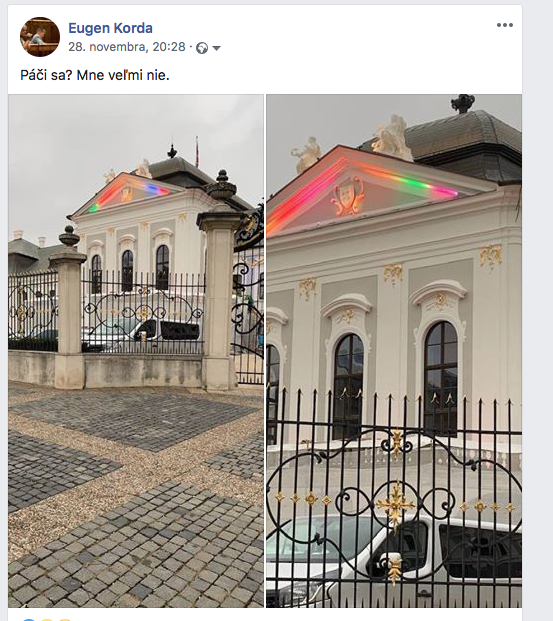 keď to však urobíte počas skúšky osvetlenia, tak to môže byť veľký problém. Presne to sa stalo aj mne. Upútali ma pestrofarebné svetelné pruhy na jeho priečelí a tak som neodolal a fotil. To samo osebe by, samozrejme, ešte nebol žiadny problém. Ten nastal až vtedy, keď som fotografie zverejnil na svojej FB stránke s otázkou, či sa to ľuďom páči a dodal som, že mne veľmi nie.
