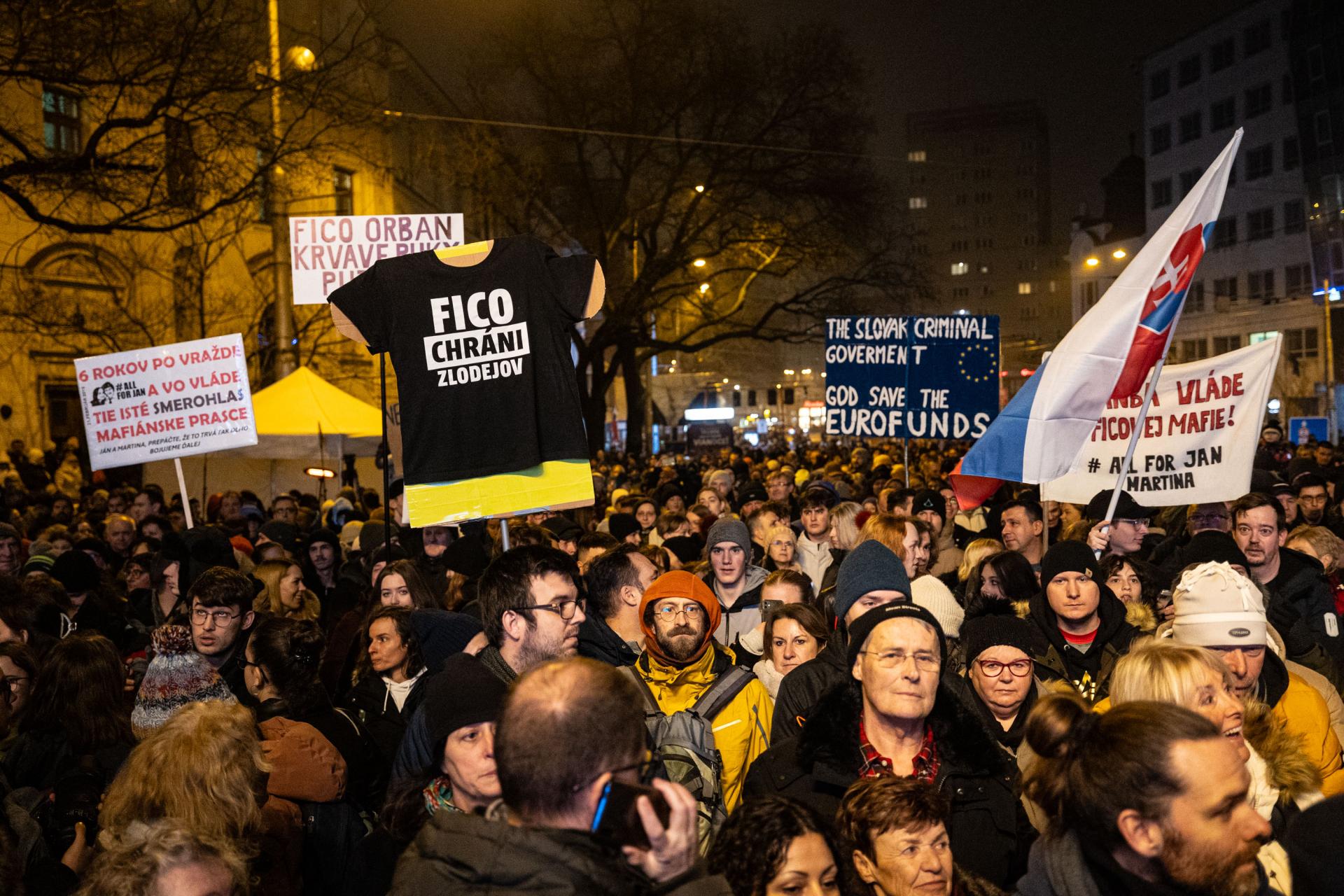 vo viacerých slovenských mestách vo štvrtok večer pokračovali protesty proti vládnej novele Trestného zákona a zámeru zrušiť Úrad špeciálnej prokuratúry ÚŠP. Ako na bratislavskom proteste uviedla moderátorka Kristína Tormová, protesty sa dnes konali v 24 mestách. Dodala, že za posledný týždeň sa objavili nové témy, v tomto smere pripomenula nehodu podpredsedu parlamentu a predsedu SNS Andreja Danka, ktorý pred týždňom narazil do semaforu a z miesta nehody odišiel. Protesty organizujú Progresívne Slovensko (PS), Kresťanskodemokratické hnutie (KDH) a Sloboda a Solidarita (SaS). Okrem hlavného mesta Bratislava sa konali v Košiciach, Nitre, Banskej Bystrici, Trenčíne, Prešove, Trnave, ale aj v Považskej Bystrici, Lučenci, Matrine, Spišskej Novej Vsi, Leviciach, Prievidzi či v Piešťanoch.