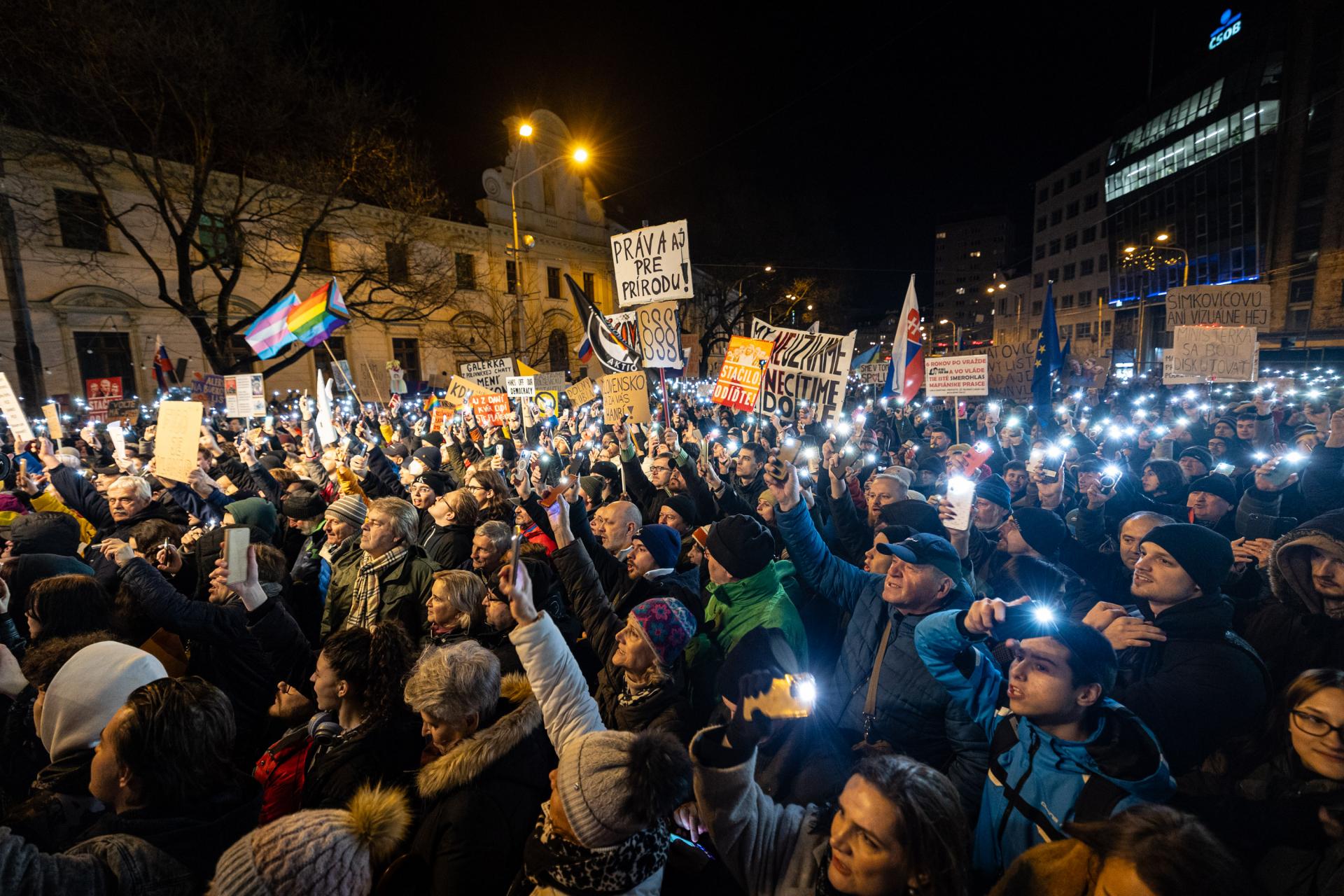 v Bratislave a ďalších takmer 20 slovenských mestách sa začal siedmy protest proti rušeniu Úradu špeciálnej prokuratúry (ÚŠP) či znižovaniu trestných sadzieb. Protesty organizujú opozičné politické subjekty hnutie Progresívne Slovensko (PS), Kresťanskodemokratické hnutie (KDH) a strana Sloboda a Solidarita (SaS). Súčasne sa konajú aj občianske protesty v ďalších slovenských mestách. Protesty proti zmenám vlády Roberta Fica (Smer-SD) sa podľa medializovaných informácií konajú aj v zahraničí, ako napríklad v českej Prahe či Brne, nórskom Osle, poľskom Krakove, ale aj francúzskom Paríži či írskom Newbridge. Na bratislavský protest prišlo podľa informácií lídra PS Michala Šimečku viac ako 30-tisíc ľudí.