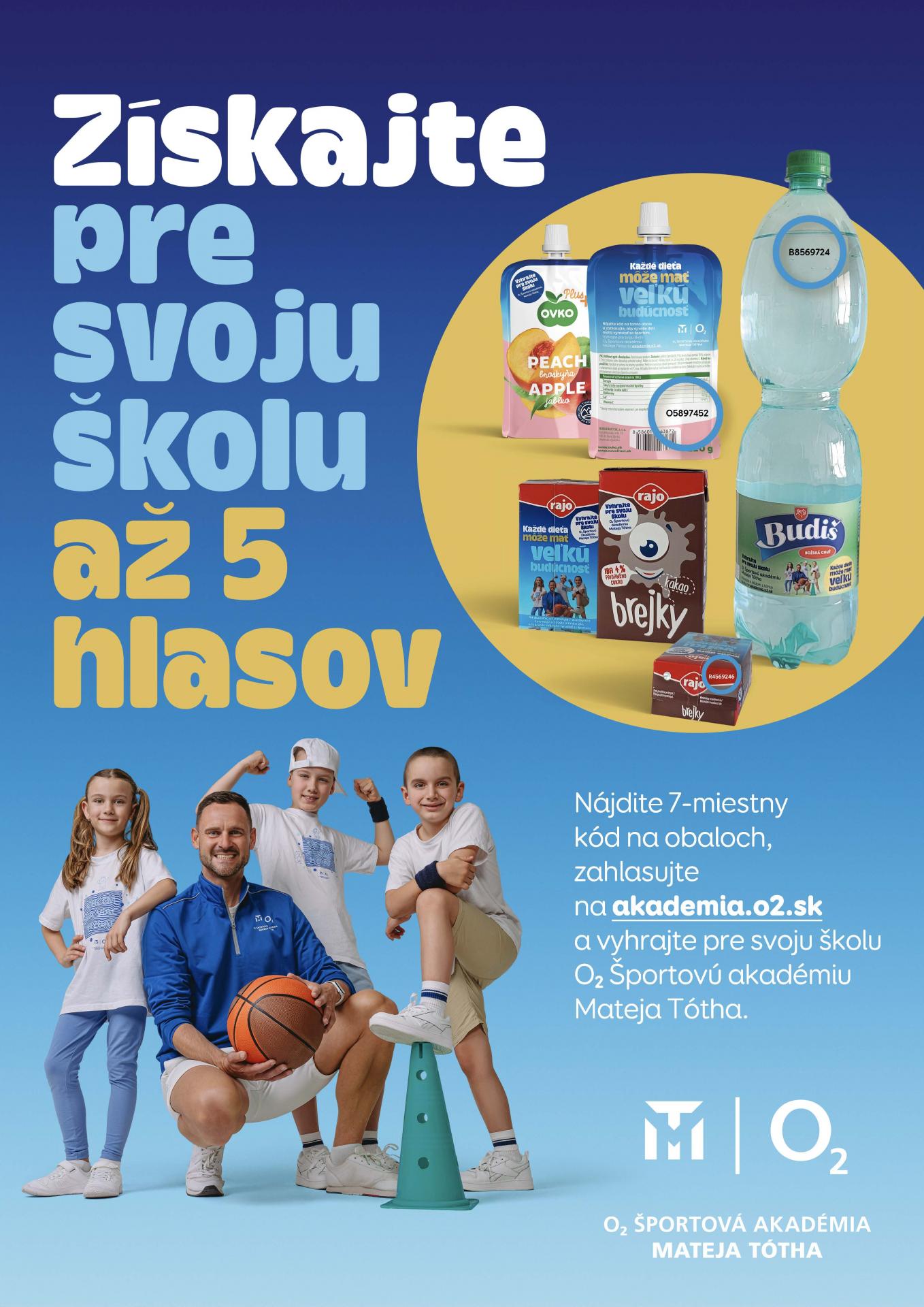- Každý kód zo súťažného produktu (rajo brejky, OVKO Plus, Budiš 1,5 l, aplikácia O2) znamená 5 hlasov pre vašu školu.