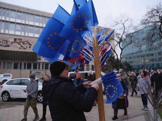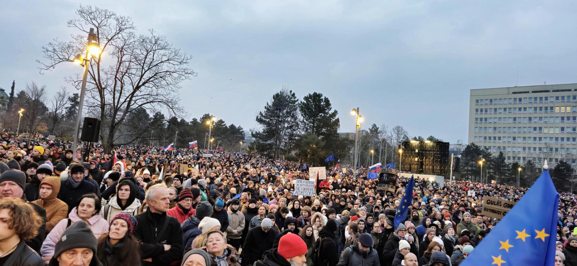 Protest v Bratislave sa skončil hymnou Európskej únie a Slovenskej republiky.
