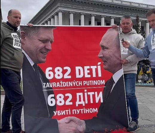 „Milióny ľudí na Slovensku cítili hanbu a pocit zrady, keď dnes videli Fica klaňať sa a bozkávať tak symbolický prsteň vrahovi Putinovi. Preto sme sem prišli, aby sme v mene týchto ľudí povzbudili Ukrajincov, že Slovensko nie je len Fico,“ povedal líder hnutia Igor Matovič.