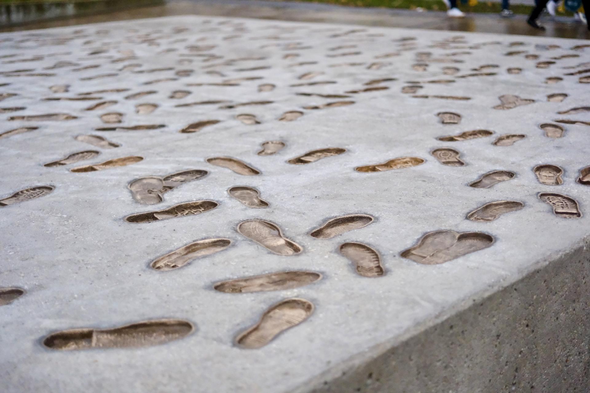 Na pamätníku sú odtlačky stôp. „Znázorňujú tých, ktorí konali a postavili sa za svoje práva. Boli to takí istí ľudia, ako sme my všetci - študenti, zamestnanci, rodičia, dôchodcovia, zdraví, chorí. So svojimi radosťami aj starosťami," poznamenal primátor. Ako dodal, títo všetci si mohli povedať, že sami nič nezmôžu. „Našťastie to nenechali tak a aj vďaka nim dnes žijeme ešte stále v demokratickom štáte," doplnil.