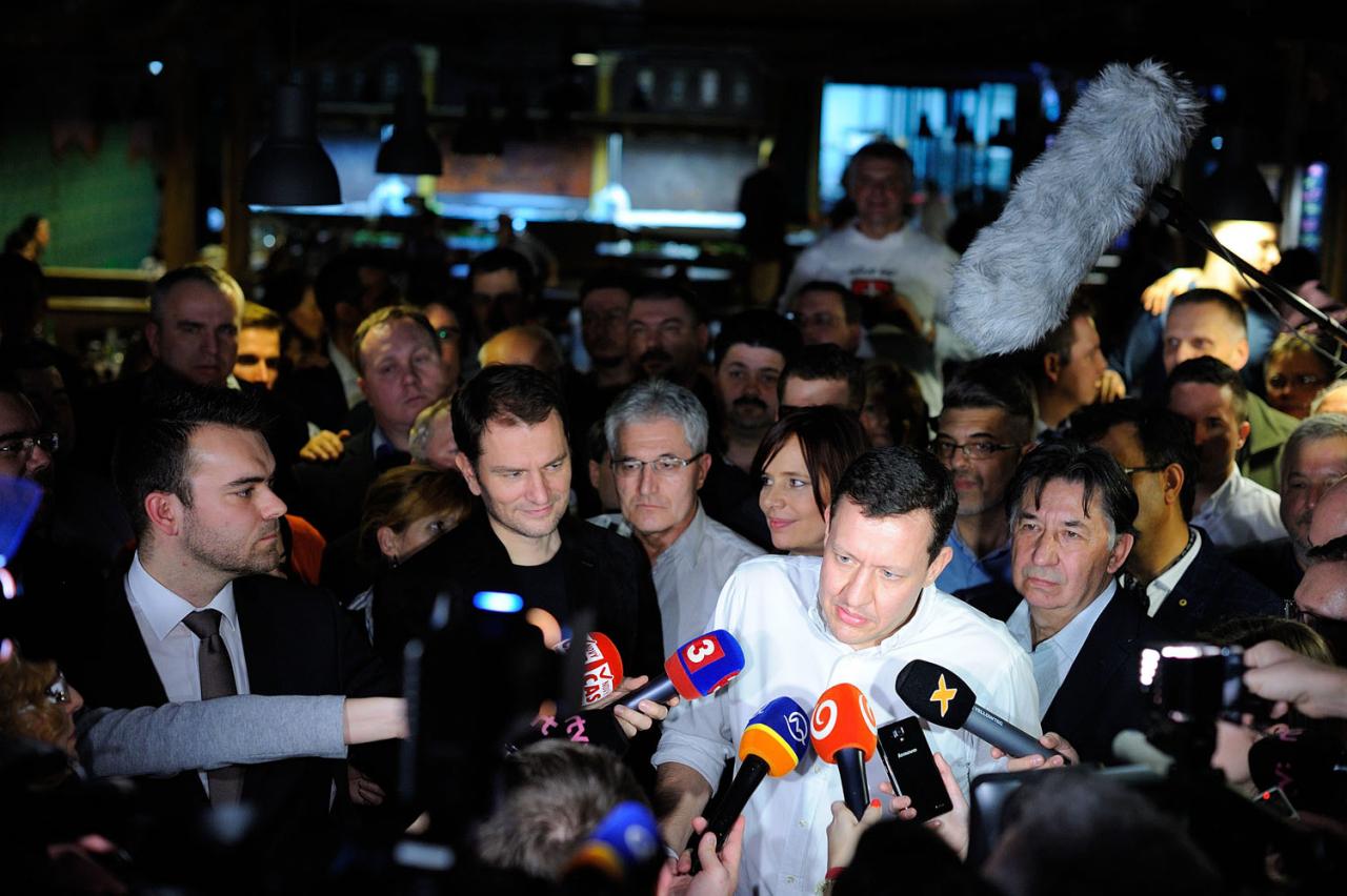 V kŕdli novinárov žoviálny Matovič objíma svoje dcéry. „Nechty si neohryzeme, dopadne to dobre,“ tvrdí tvrdo po trnavsky. Lipšic obozretne hovorí o pokore a čakaní do rána. Prípadne o smútení či nadšení. Vzápätí po zverejnení prvých exitpollov prepukne to druhé. Vytriezvenie nastáva pri oznámení odhadov Kotlebu.