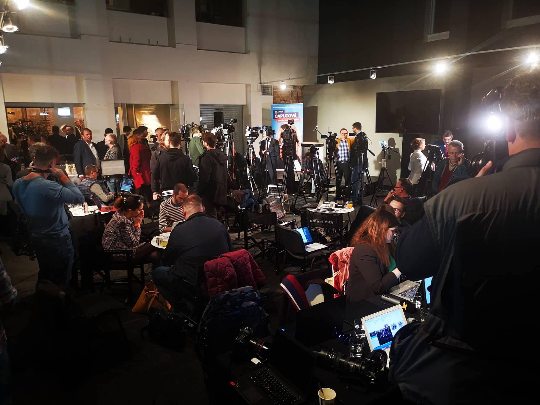 21:01 Vo volebnej centrále Zuzany Čaputovej sa zhromažďujú novinári. Sú v inej miestnosti, ako kandidátka.