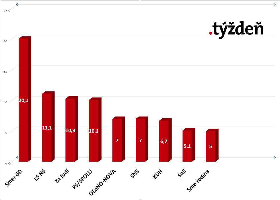 Prekvapením prieskumu je ale strana Za ľudí, ktorá po prvýkrát predbehla koalíciu PS/Spolu.