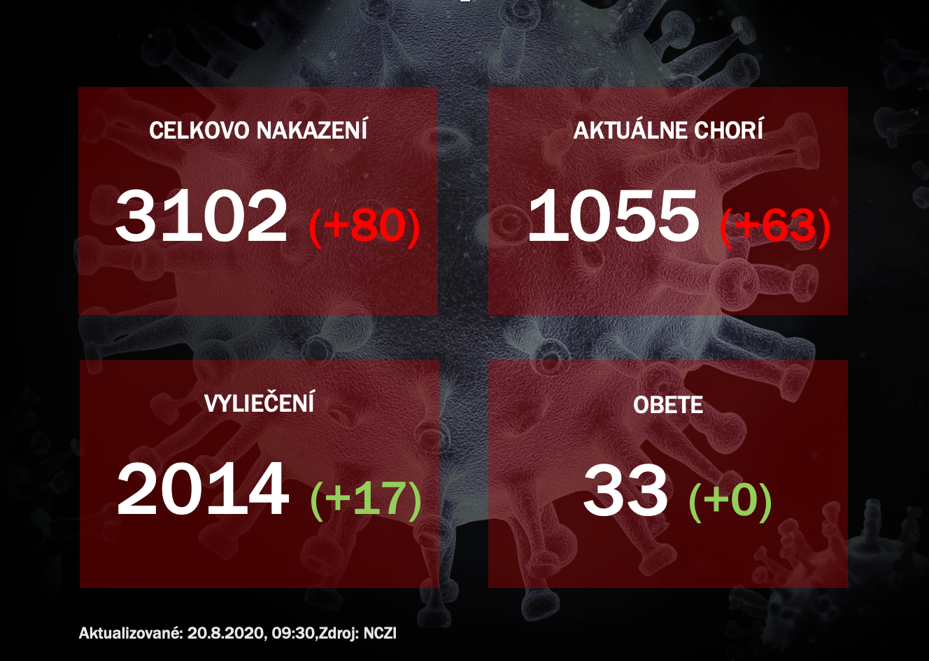 V tejto chvíli eviduje Slovensko 1055 ľudí s potvrdeným vírusom. Od začiatku pandémie je to už 3102.