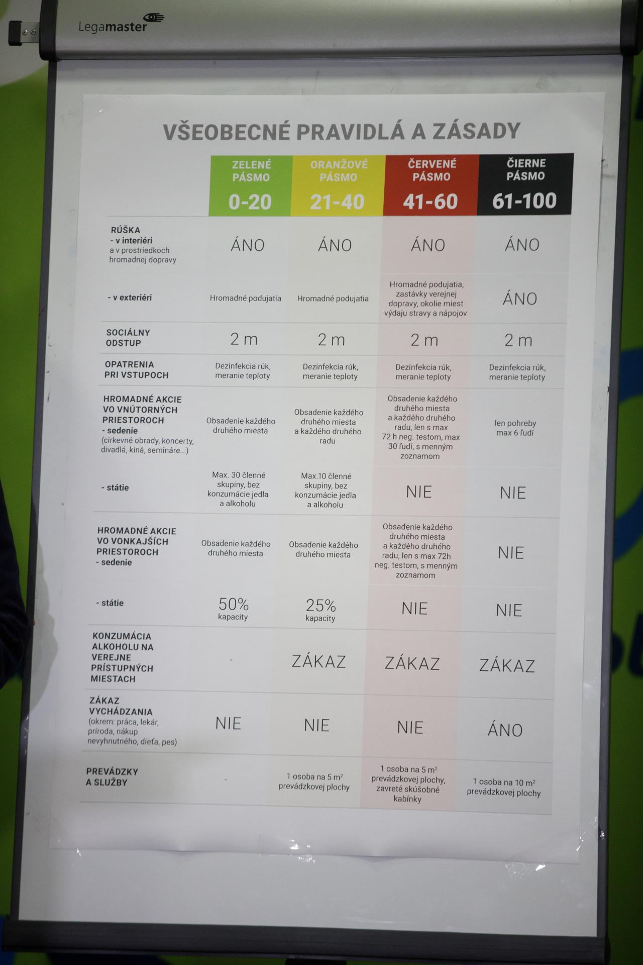 Semafor zdravia je rozdelený na osem kapitol, prvá sa týka všeobecných podmienok, ktoré platia vždy. Presne stanovuje, ako sa majú ľudia správať, ak sa u nich prejavia symptómy, ak sa stretli s nakazeným alebo sa vrátili z červenej krajiny. Ľudia totiž podľa Jany Bittó Cigánikovej často nevedia, čo majú robiť a ako sa majú správať.