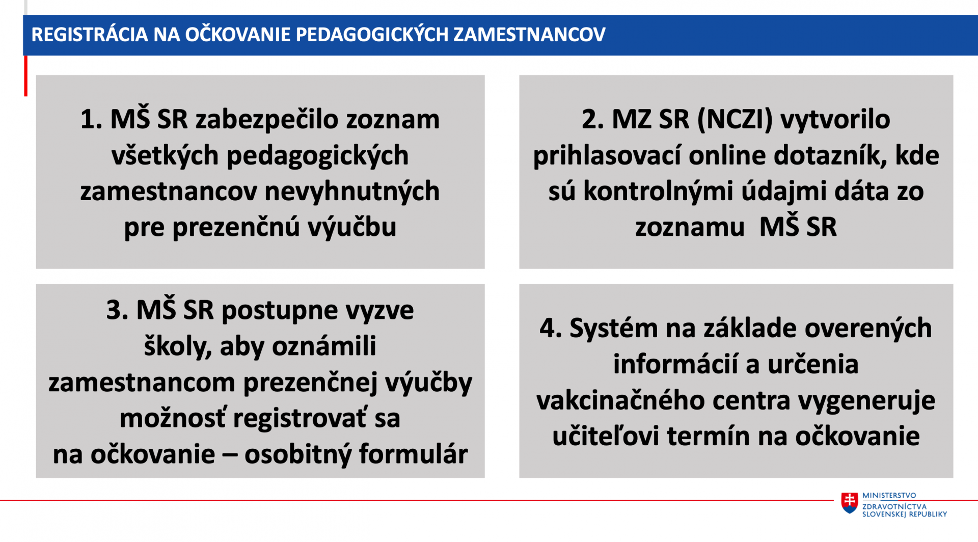 riaditelia v priebehu štvrtka a piatka (12. 2.) dostanú link, cez ktorý sa bude dať prihlásiť na očkovanie. Oznámil to minister školstva, vedy, výskumu a športu Branislav Gröhling (SaS).