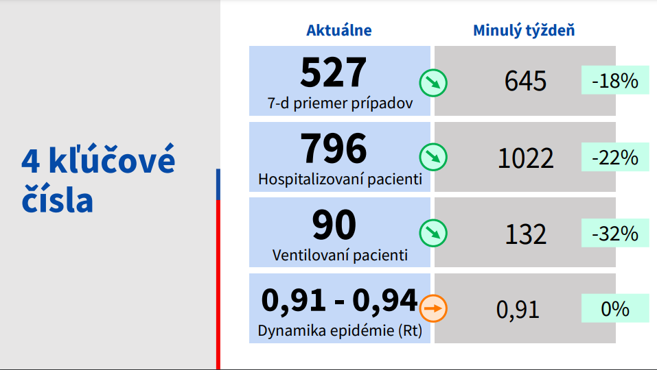 epidemiologická situácia na Slovensku sa opäť mierne zlepšila. Ventilovaných je 90 pacientov, v nemocniciach je hospitalizovaných menej ako 800 ľudí. Plne zaočkovaných je okolo 700.000 ľudí. Situácia je pomerne priaznivá aj v okolitých krajinách. V stredu o tom na tlačovej konferencii informoval šéf Inštitútu zdravotných analýz (IZA) Matej Mišík.