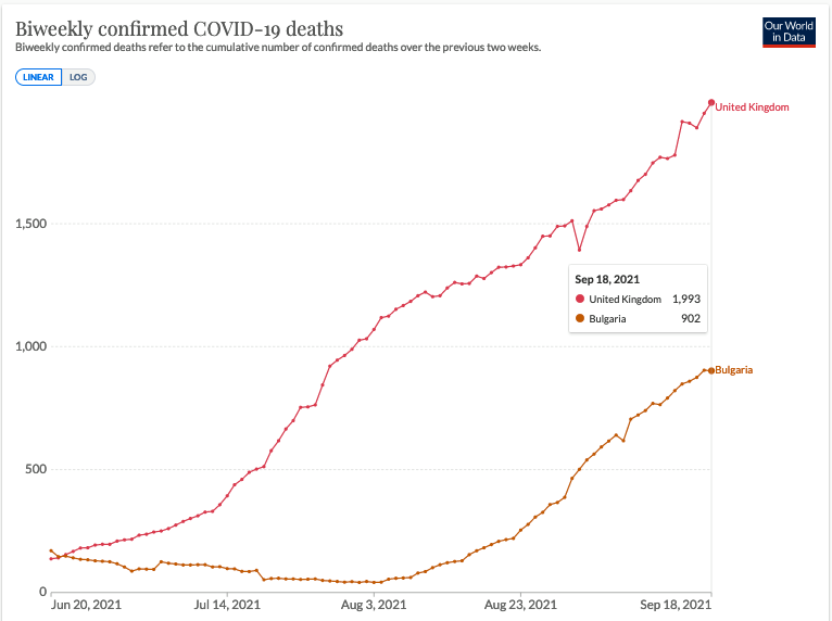 ozaj: Bulharsko je presne 10x menšie ako Veľká Británia. Dali sme to aj nominálne na 1 mil. obyvateľov.