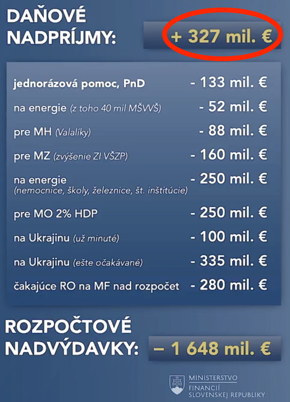 - Výber daní nad rozpočtovanú úroveň (kde bol schválený rast €955 miliónov) bude viac ako € 1,5 miliardy (2640 - 955 = 1685 ). Niekedy stačí kalkulačka.