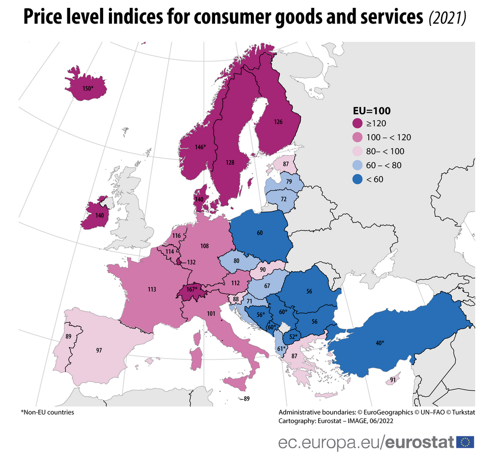 Druhá tabuľka je o pomere kúpnej sily na Slovensku a v ostatných krajinách EÚ. Toto je relevantnejšie porovnanie, ale v kontexte prvej tabuľky je jasné, že máme čo robiť, aby sa tu u nás lepšie žilo.