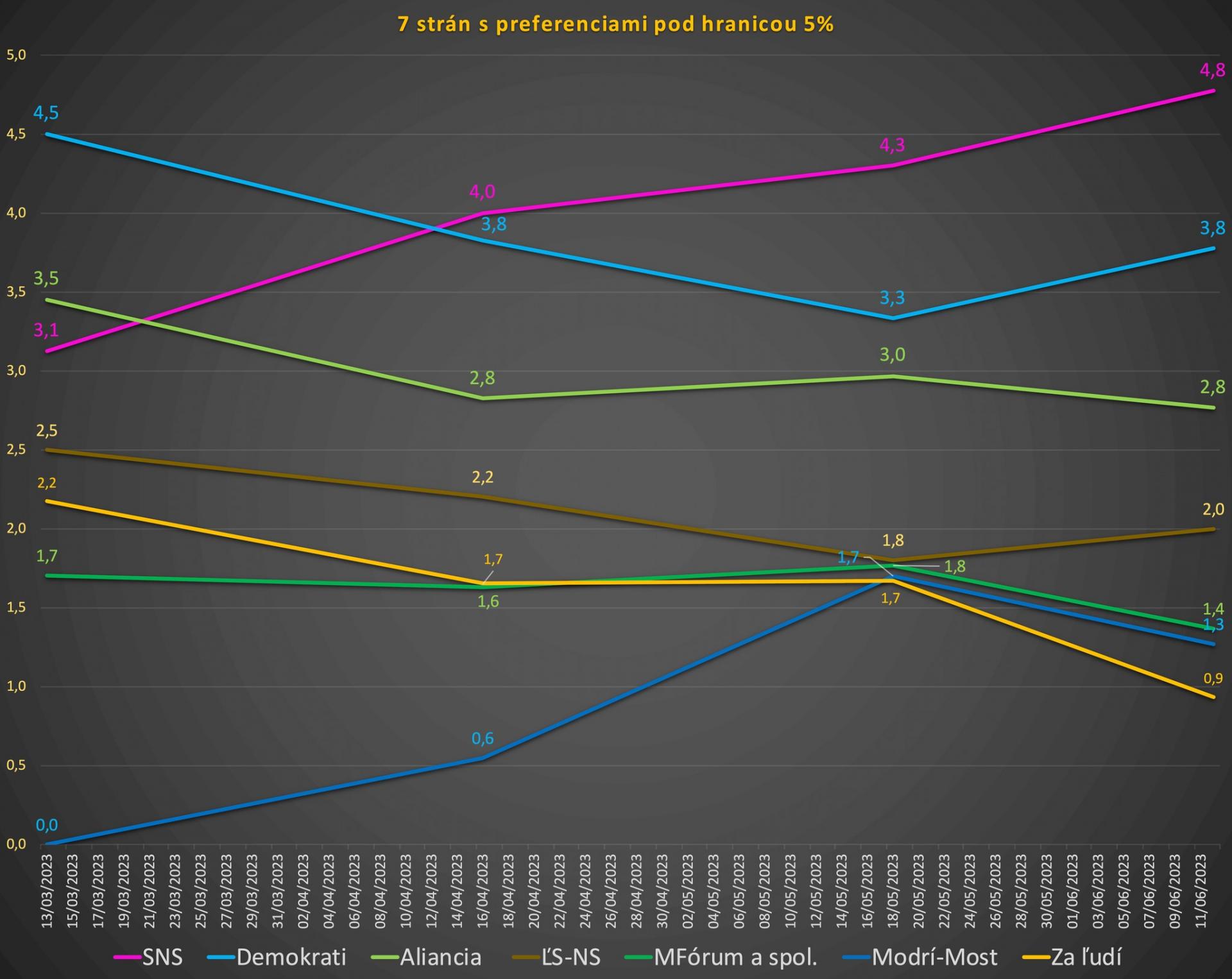 Z tých strán, ktoré 3 mesiace pred minulými voľbami vo februári 2020 mali pod 5 % v prieskumoch, sa ani jedna nedostala do parlamentu. A to tam boli aj strany s 2 – 3 – 4 a aj takmer 5 percentami.