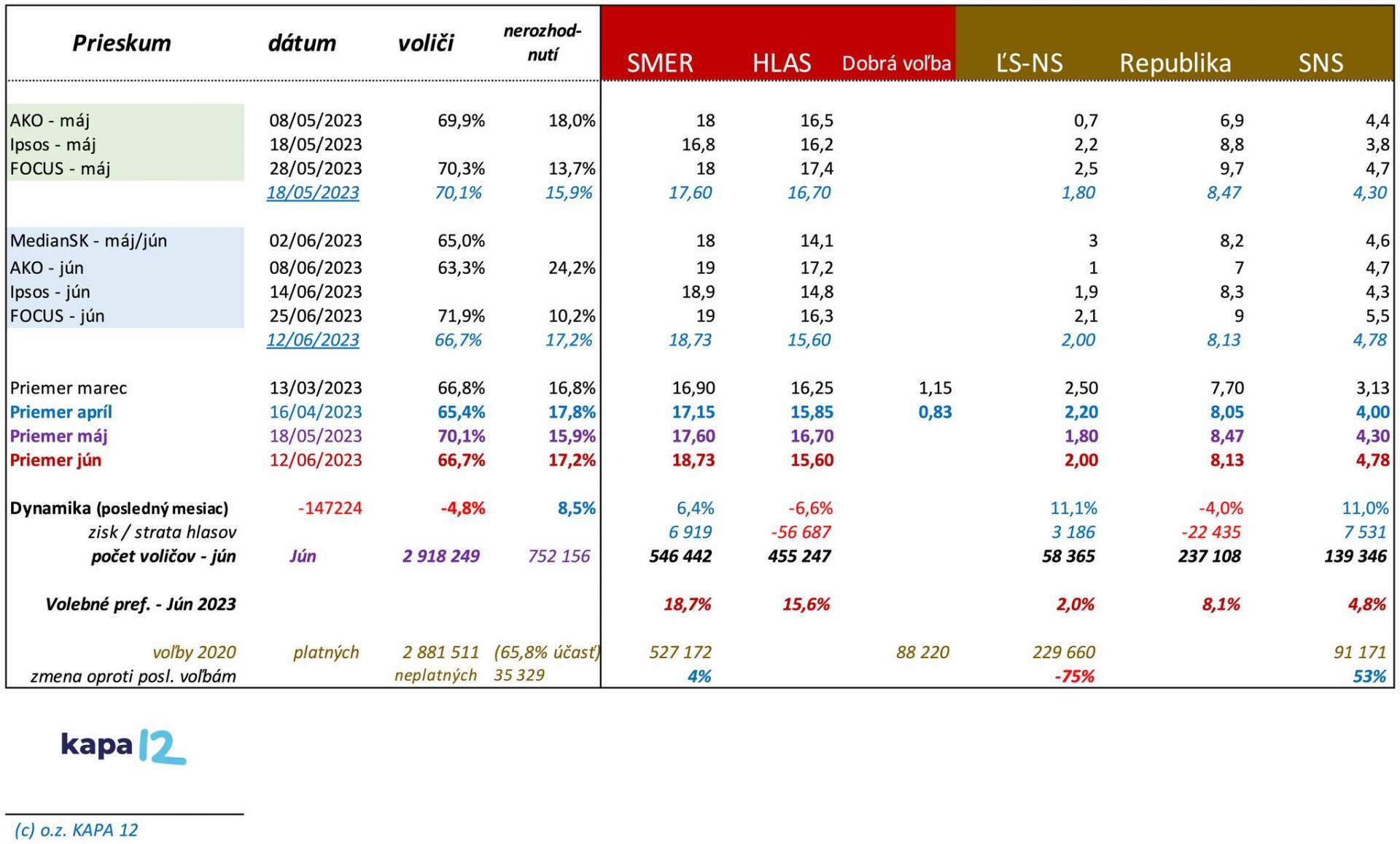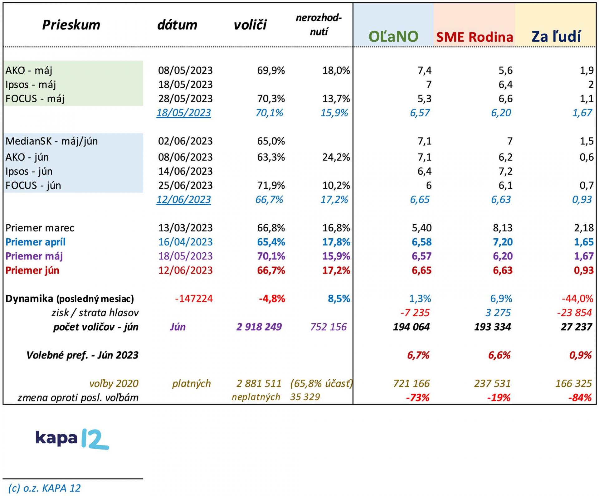 Všetko za predpokladu tak, ako píše o výsledkoch prieskumov KAPA 12 – Analytics. Ešte nikdy tak málo voličov nerozhodovalo o tak veľkých veciach. A ešte nikdy strany-zoskupenia s tak nízkymi preferenciami do 2 % nemohli tak zásadne ovplyvniť (potencionálne o 10 %) zloženie Národnej Rady SR.