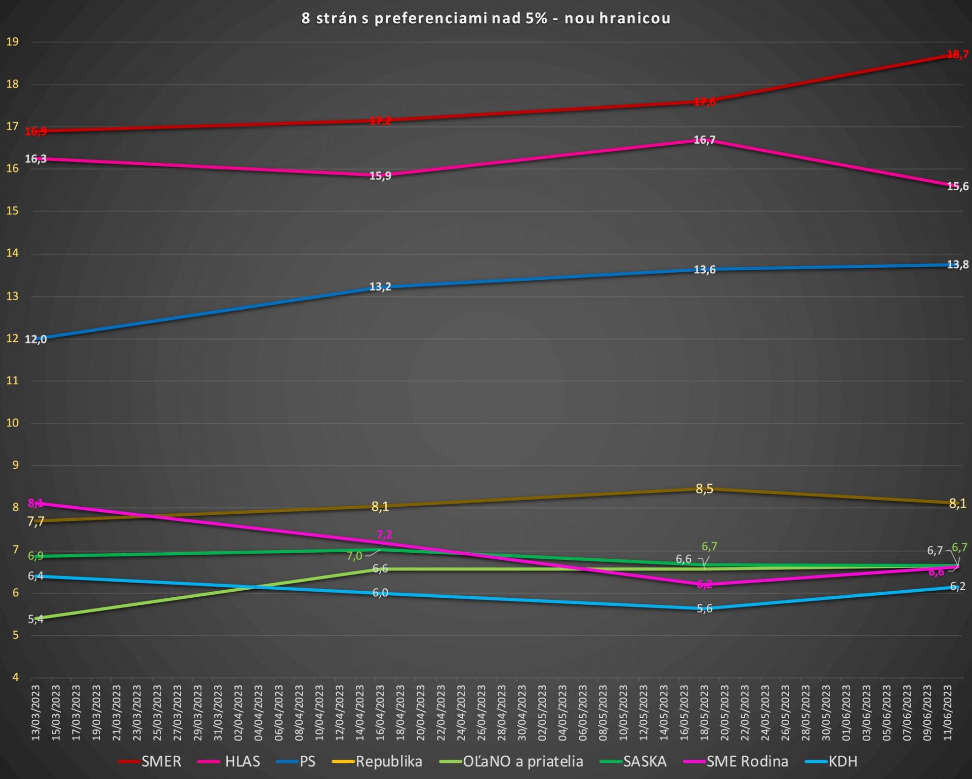 Stále hrozí, že sa do parlamentu nedostane niektorá zo strán, ktoré sú okolo 5 – 6 – 7 percent. A to platí tak o SNS, ako aj o Sme rodina, SAS, KDH a OĽaNO.