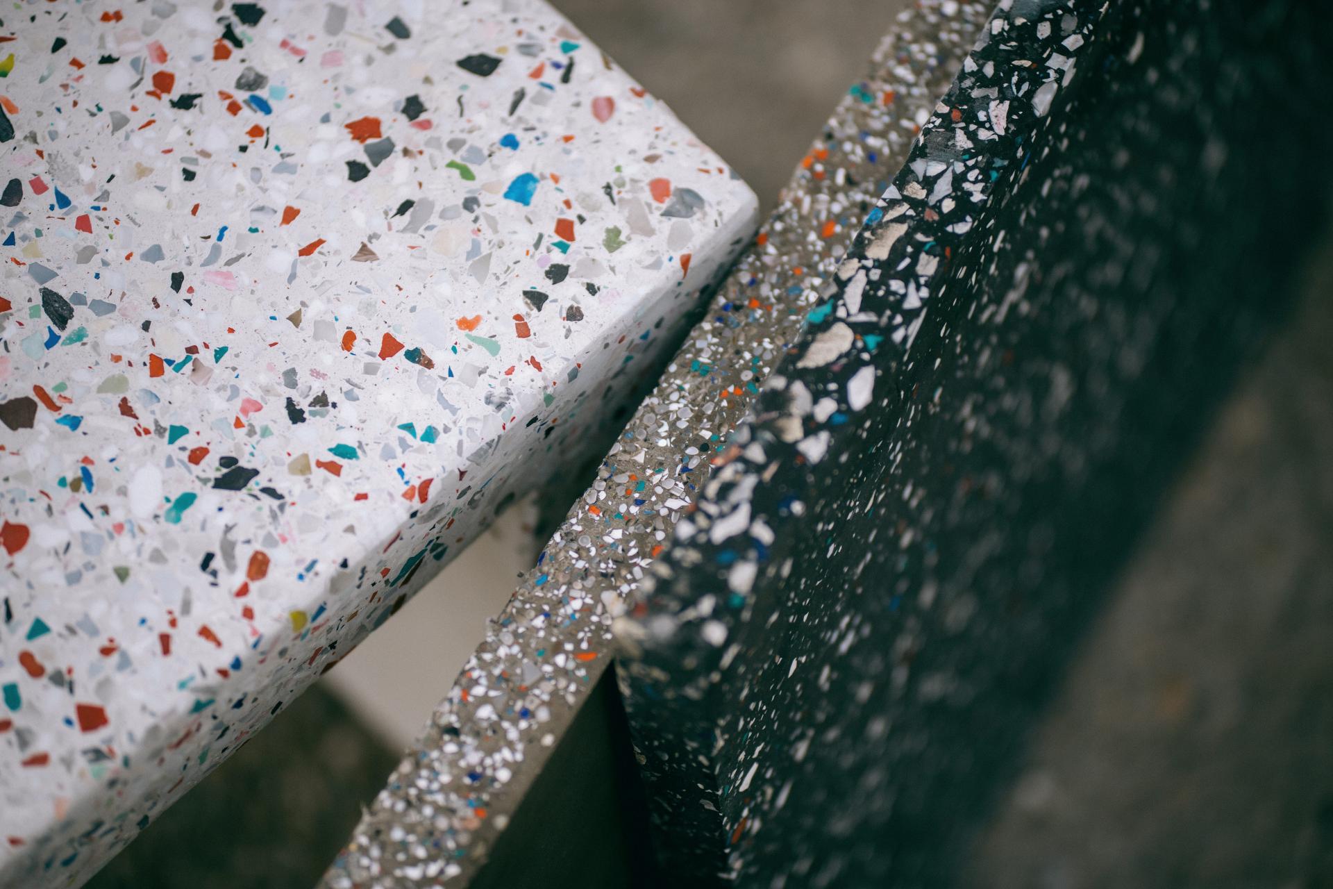 Eko lavičky zo separovaných plastov v spolupráci s 365.bank vyrába slovenská firma MANEO TECH špeciálnou patentovanou technológiou, ktorej vývoj trval až sedem rokov. V každom jednom kuse je zrecyklovaných až 50 kg plastov. Špeciálny materiál je ohňovzdorný, pružný, veľmi pevný a oproti klasickému betónu mimoriadne ľahký. Svojím dizajnom pripomína prírodný kameň, avšak namiesto prírodného materiálu bol na výrobu lavičiek použitý výlučne separovaný plastový odpad, ako aj plastové kúsky zo starých platobných a vernostných kariet. Vďaka plastovej prímesi je materiál nielen lacnejší ako prírodný kameň, ale aj ekologickejší, keďže ho netreba ťažiť a dovážať. Lavičky tak nielen prispievajú k upcyklácii, ale chránia aj prírodu a šetria prírodné zdroje.