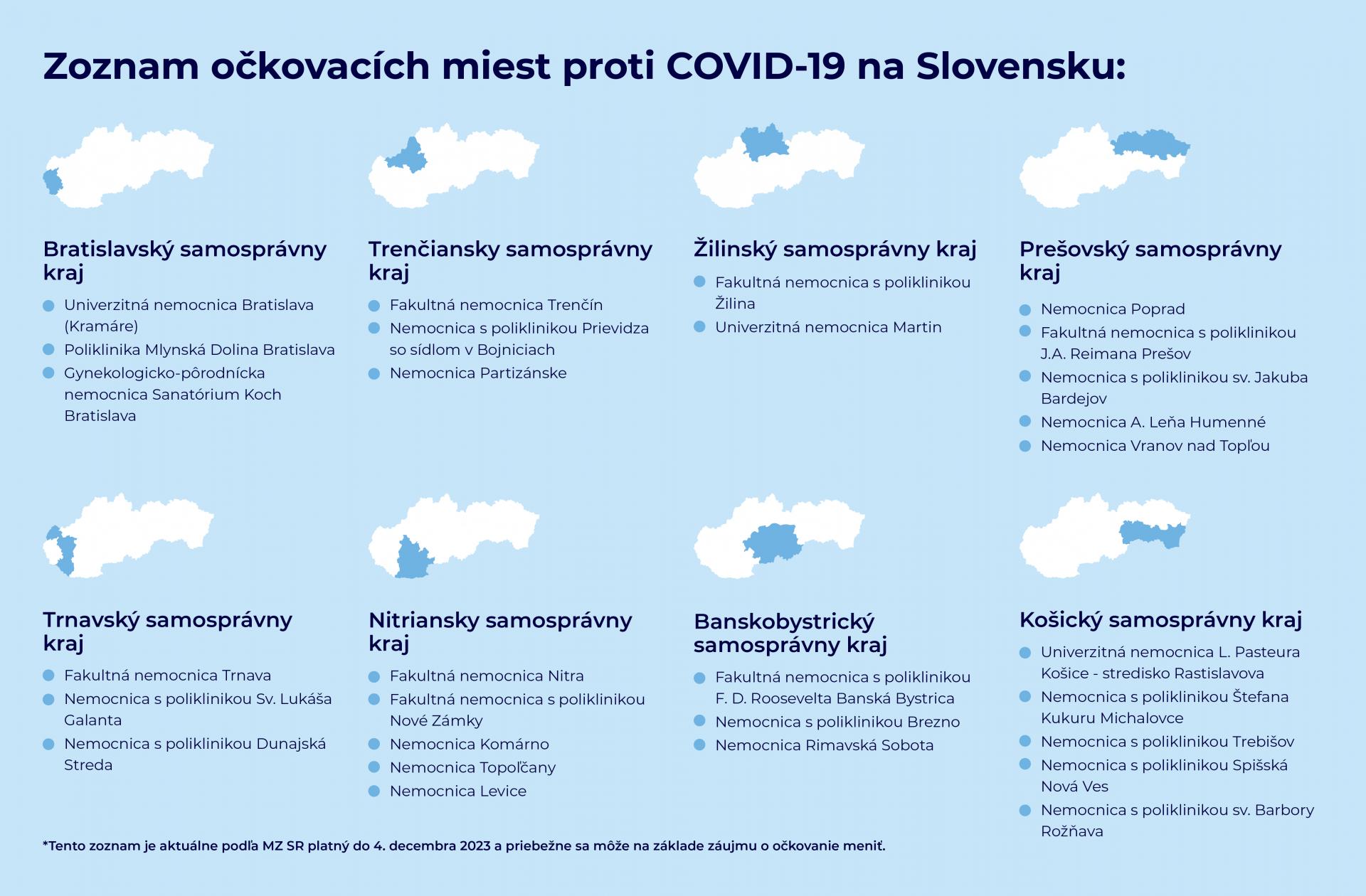 Od 25. septembra 2023 Ministerstvo zdravotníctva SR spustilo možnosť bezplatného očkovania proti COVID-19 v 29 očkovacích centrách po celom Slovensku.