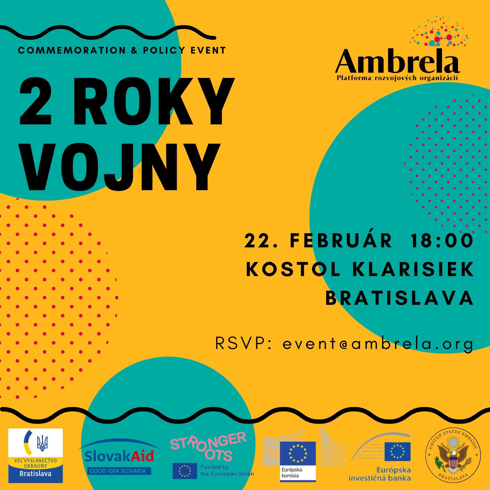 koncom februára si pripomíname dva roky vojnovej operácie Ruska na Ukrajine, hoci jeho agresia tam trvá už od roku 2014. Pripomínáme si však aj dva roky humanitárnej pomoci SR tamojšiemu obavateľstvu. Pri tejto príležitosti platforma Ambrela pripravuje na 22. februára v bratislavskom kostole Klarisiek podujatie s názvom ‚Dva roky vojny’.