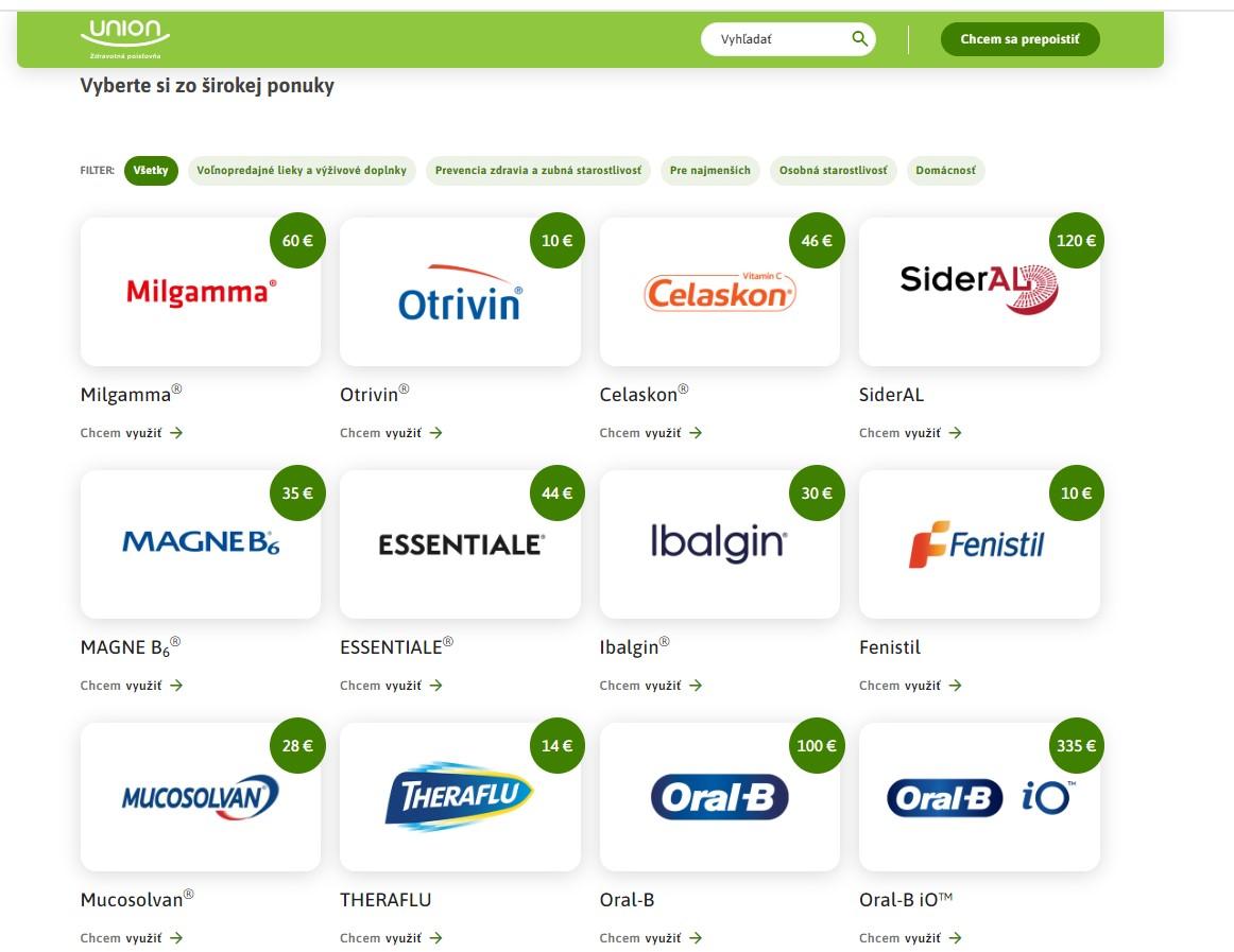 Zdravotná poisťovňa Union sa preto rozhodla pomôcť svojim poistencom. Po benefite preplácania liekov na predpis pre všetky deti do veku 18 rokov neobmedzene, prinášame pre všetkých našich poistencov aj zľavy na sortiment voľnopredajných liekov. „Pre našich klientov sme pripravili špeciálny portál s príznačným názvom menimezivotyklepsiemu.sk Tam nájdete zoznam všetkých vybraných výrobkov, na ktoré získate špeciálne zľavy. V ponuke sú užitočné produkty pre prevenciu, zubnú starostlivosť, pre osobnú hygienu, produkty pre najmenších aj voľnopredajné lieky. Výber je naozaj obrovský a zľavy ešte vyššie,“ prezradil Jozef Koma, riaditeľ sekcie zdravotného poistenia Unionu.