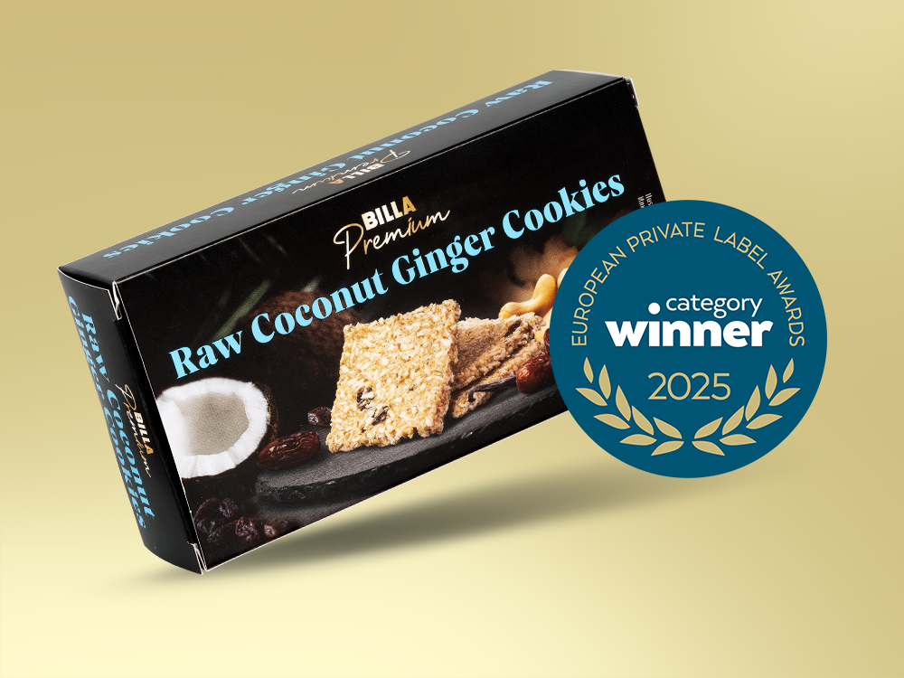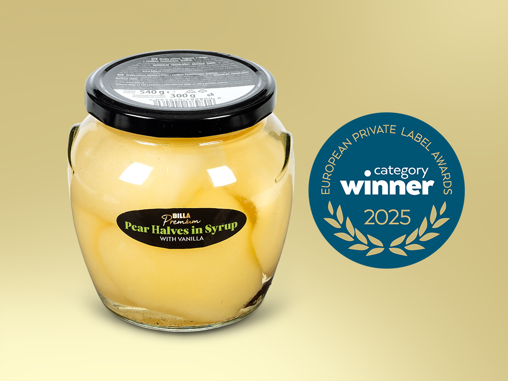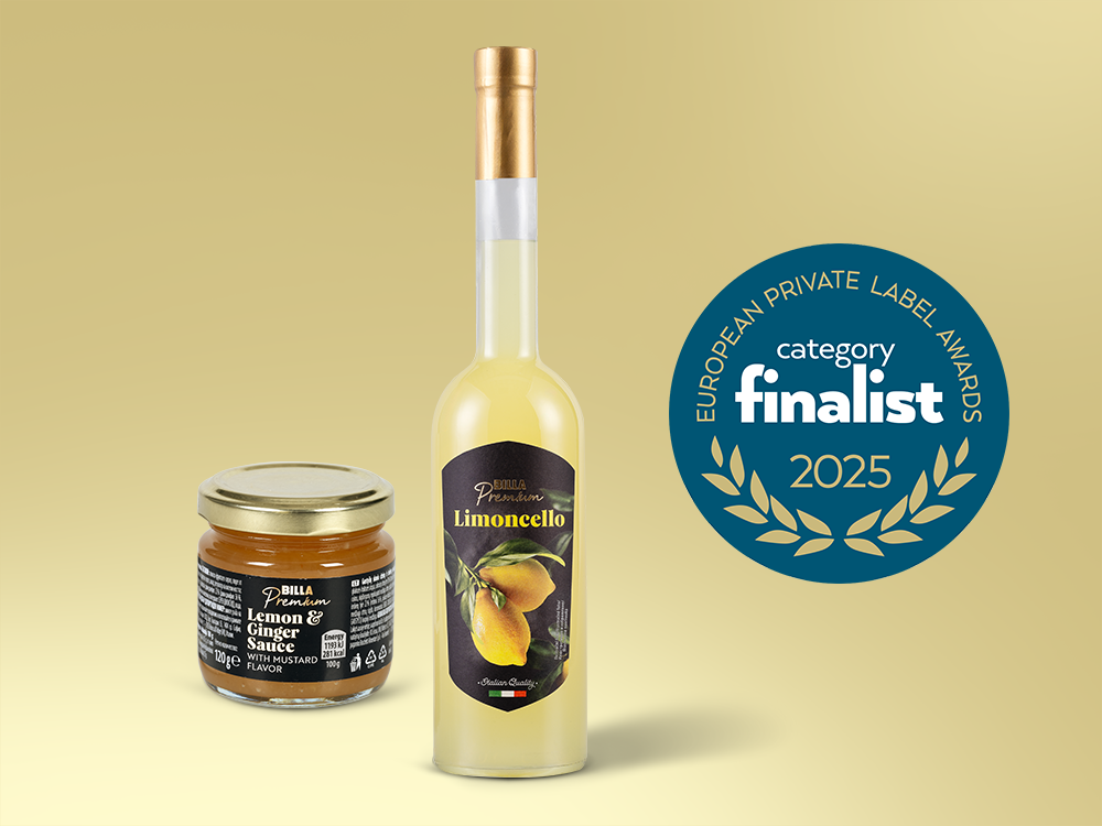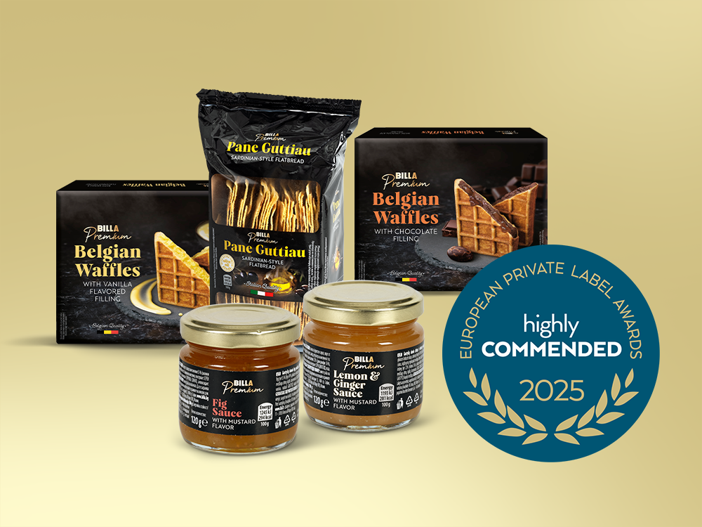 Ako víťazné ocenila odborná porota v European Private Label Awards 2025 dva produkty BILLA Premium. V kategórii Trvanlivé potraviny si výhru odniesli polené hrušky v sirupe, ktoré vynikajú jemným vanilkovým tónom. Porota na nich vyzdvihla výbornú chuť, inovatívny koncept a štýlový dizajn. Prvenstvo tiež získali nepečené zázvorovo-kokosové sušienky, a to v kategórii Cukrovinky. Vyrobené sú bez akýkoľvek umelých prísad a ohúrili najmä svojou prírodnou, delikátnou chuťou a vysokou kvalitou. Uznania v renomovanej súťaži sa značke BILLA Premium dostalo aj vďaka citrónovo-zázvorovej omáčke a limoncellu, teda tradičnému talianskemu citrónovému likéru. Tieto dva produkty postúpili do finále v kategóriách Omáčky a dochucovadlá a Alkoholické nápoje. Novinkou v aktuálnom ročníku European Private Label Awards sú vysoko odporúčané produkty, ktoré sa len tesne nezmestili medzi víťazov či finalistov. Odborníci sem zo značky BILLA Premium zaradili figovo-horčicovú omáčku, belgické vafle s dvomi rôznymi príchuťami – čokoládovou a vanilkovou, a pane guttiau – sardínske chlebové placky.