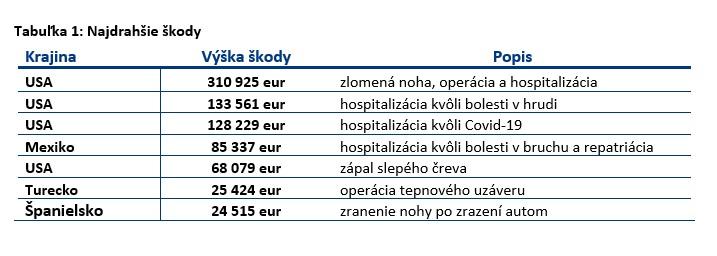 - Najviac škôd nahlásili klienti z Turecka, tretinu nákladov tvorili škody v USA