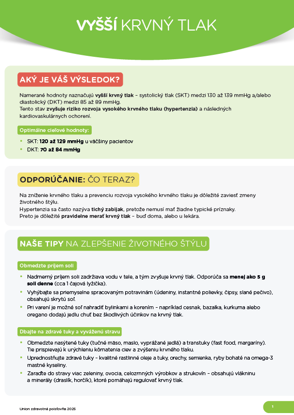 Poistenci Union zdravotnej poisťovne majú navyše výhodu, že meraní môžu absolvovať neobmedzené množstvo a dlhodobo sledovať vývoj svojich hodnôt, ukladať záznamy a porovnávať ich v čase. Takto získajú cenný prehľad o svojom zdravotnom stave a môžu ho konzultovať aj so svojím lekárom. „Veríme, že nová funkcionalita prispeje k tomu, aby si ľudia viac uvedomovali význam prevencie. Kontrola krvného tlaku je malý krok, ktorý môže mať obrovský vplyv na zdravie aj kvalitu života,“ dodáva Dupaľová Ksenzsighová.
