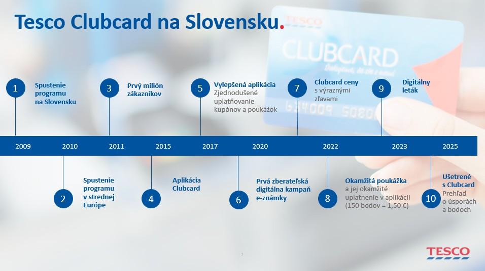 Keď Tesco v roku 2010 naplno spustilo svoj vernostný program Clubcard v strednej Európe , išlo o jeden z prvých komplexných lojalitných systémov v slovenskom maloobchode. Do dvoch rokov od spustenia počet členov Clubcard na Slovensku prekročil milión. Spočiatku zákazníci dostávali vyúčtovanie so zľavovými kupónmi každý štvrťrok poštou v obálke. Tesco Clubcard sa rýchlo etabloval ako priekopnícka iniciatíva s masovým dosahom, ktorá významne ovplyvnila vývoj maloobchodného trhu.