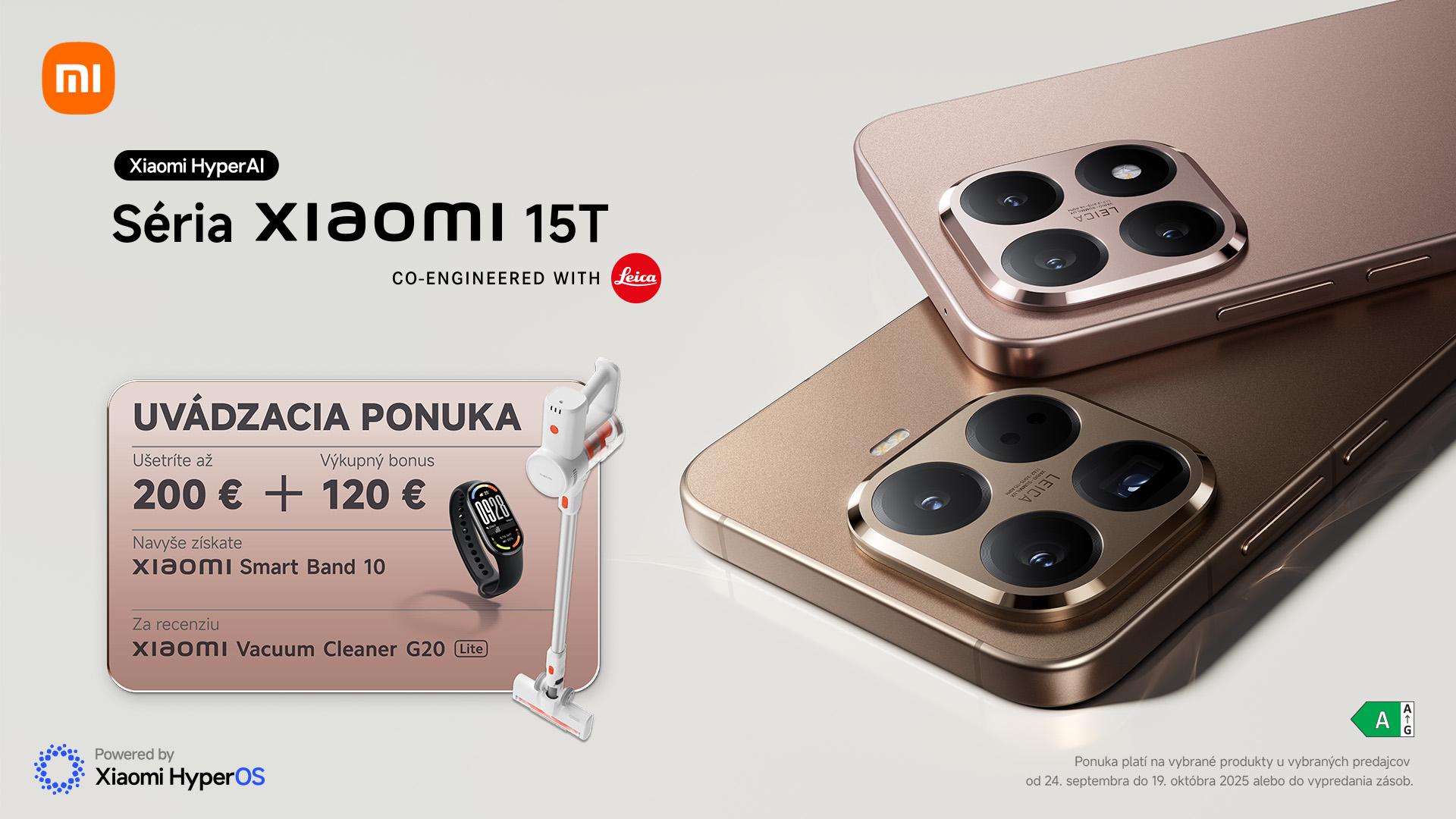 Podobne aj záujemcovia o model Xiaomi 15T môžu využiť zľavu 150 eur, bonus 80 eur pri výmene a zadarmo Xiaomi Smart Band 10. Tieto akcie sú dostupné počas obdobia od začiatku predaja až do 19. októbra 2025.