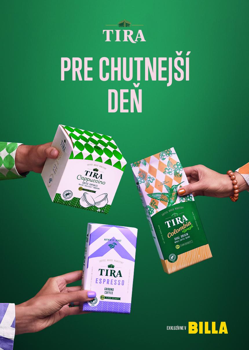Chutnú kávu si teraz môžeme dopriať aj vďaka novej privátnej značke TIRA. Spoločnosť BILLA v nej prináša vyberané zrná, vyvážené zmesi a kvalitu za rozumnú cenu. V ponuke má obľúbené odrody robusta a arabica, ktoré pochádzajú aj z Brazílie, Peru a Kolumbie. Na výber je z viacerých druhov a balení, od zrnkovej kávy cez mletú až po kávové kapsuly.